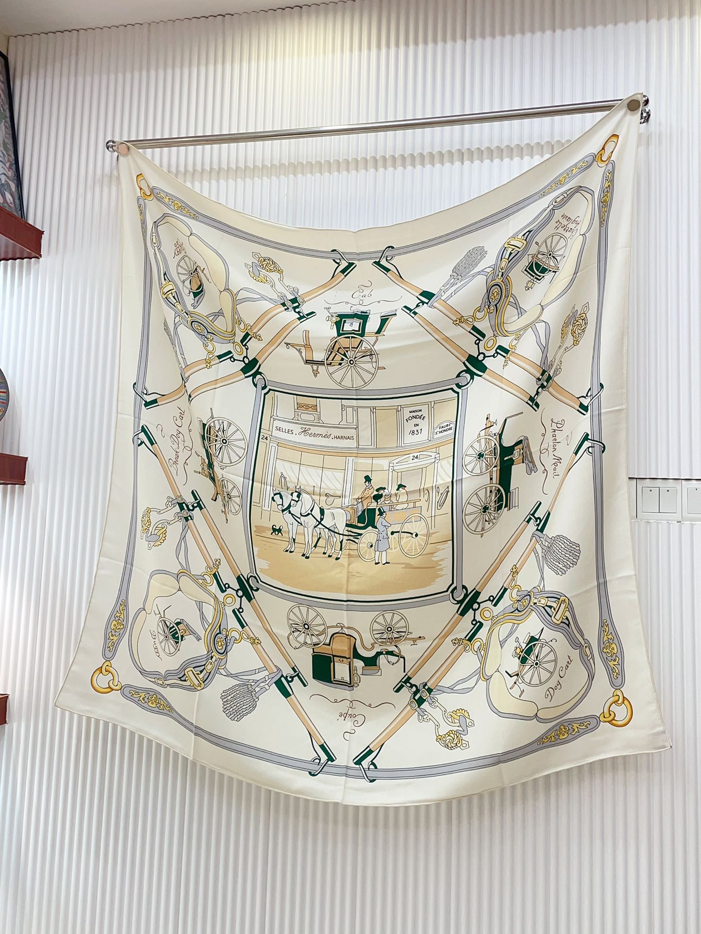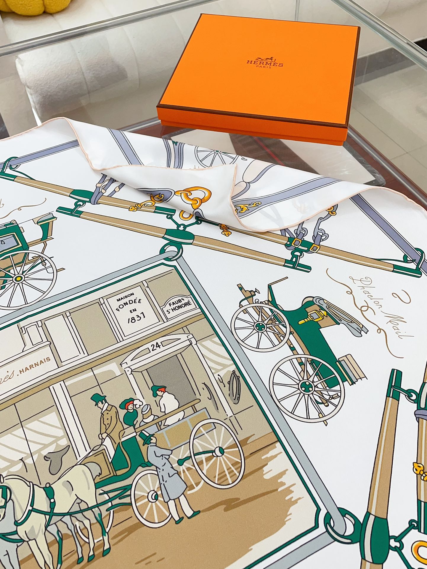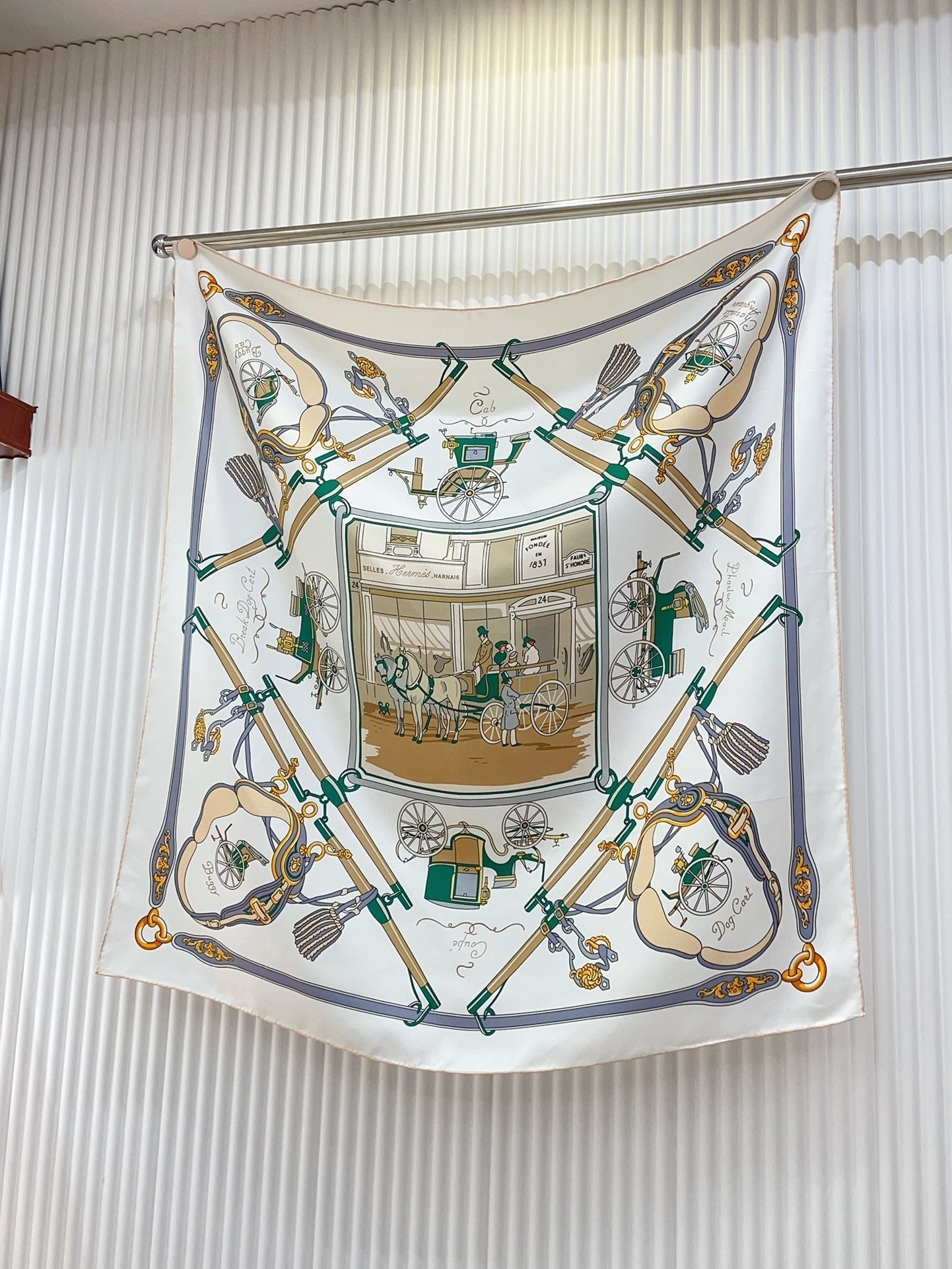 Stately Wheels Scarf 90 CM White Colorful Silk Twill 312874