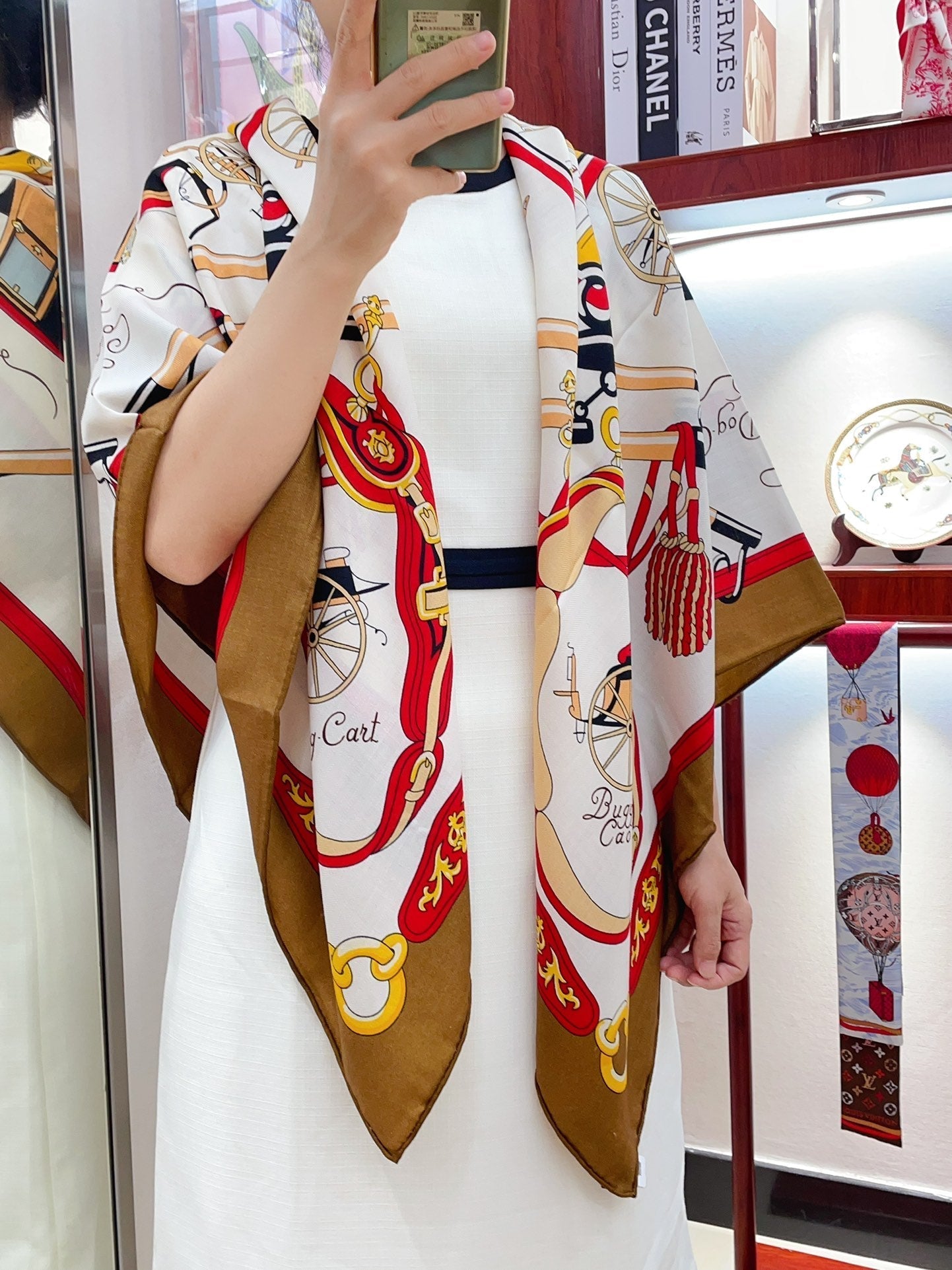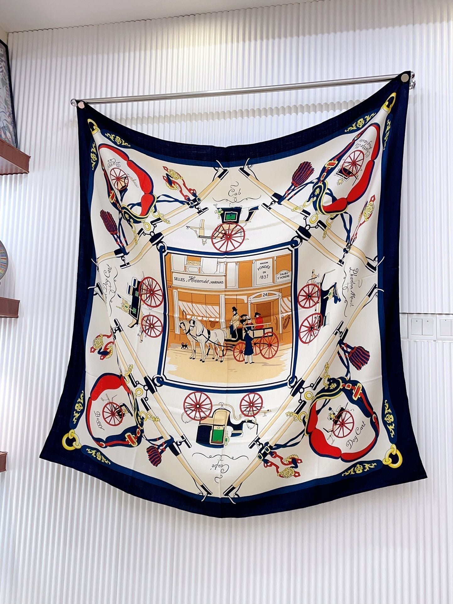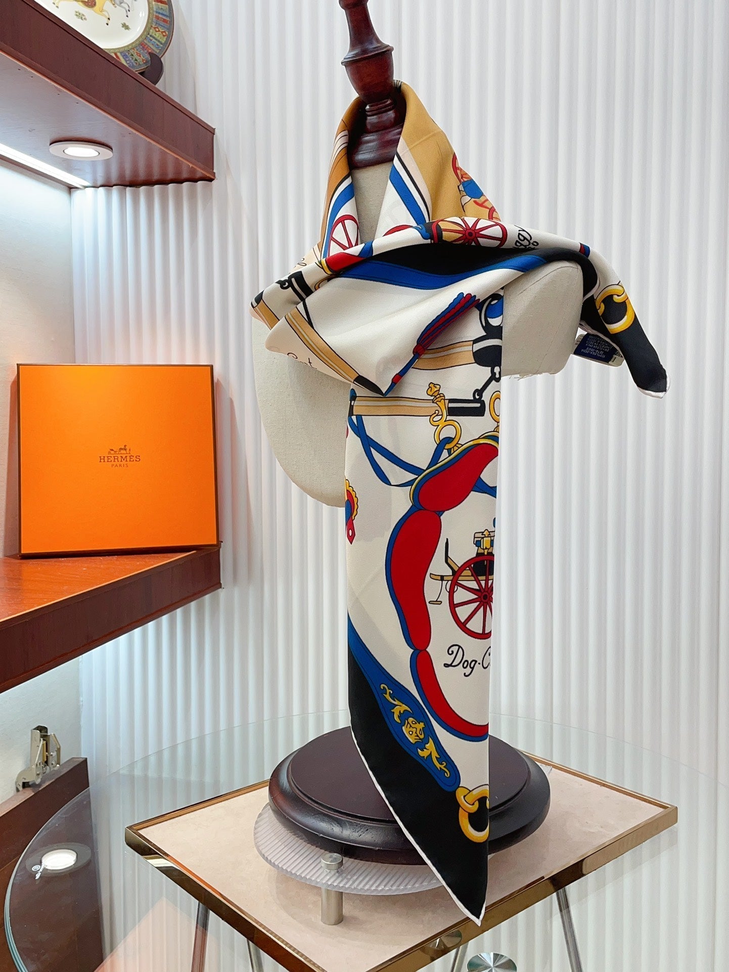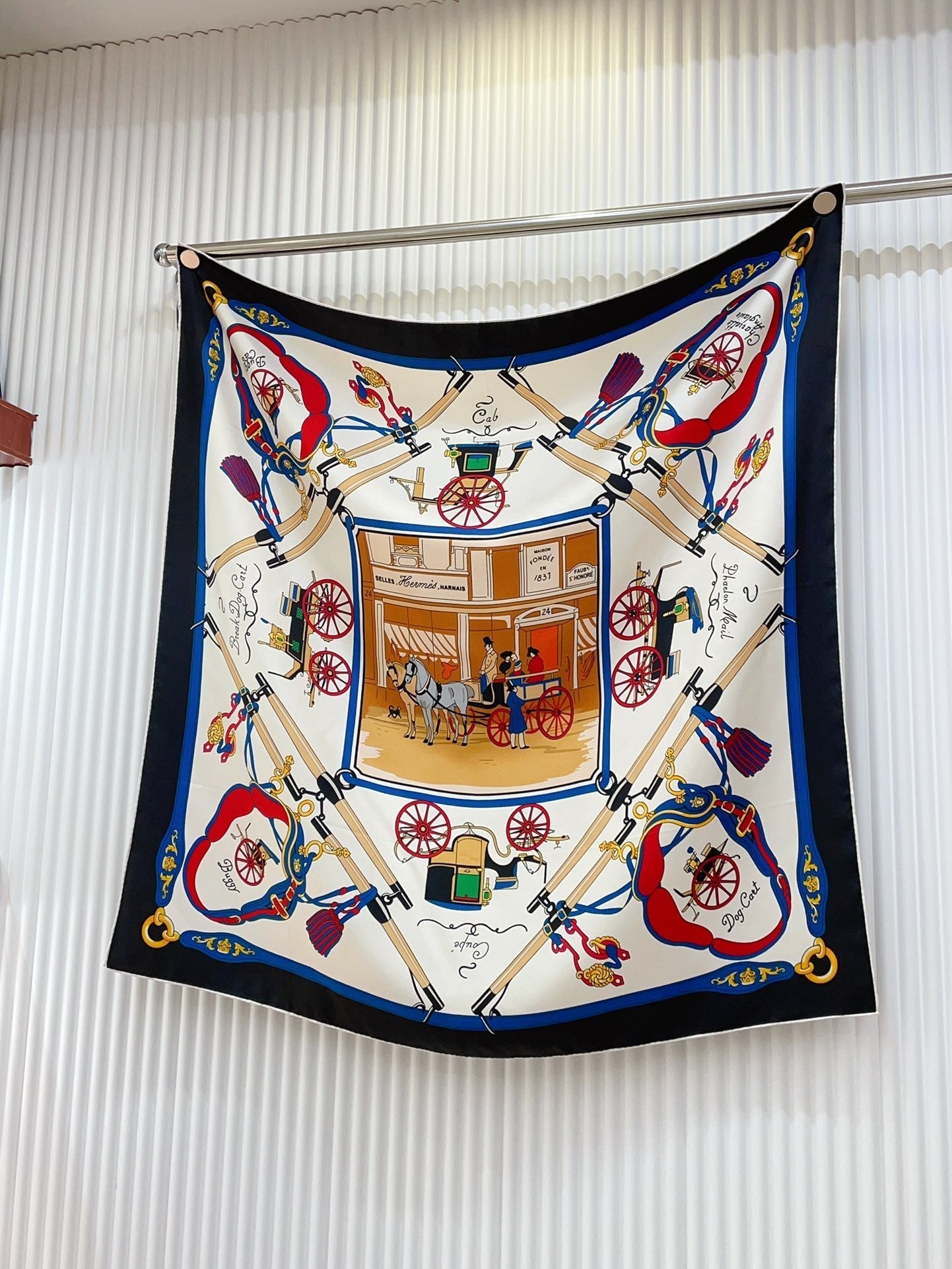 Stately Wheels Scarf 90 CM White Colorful Silk Twill 312874