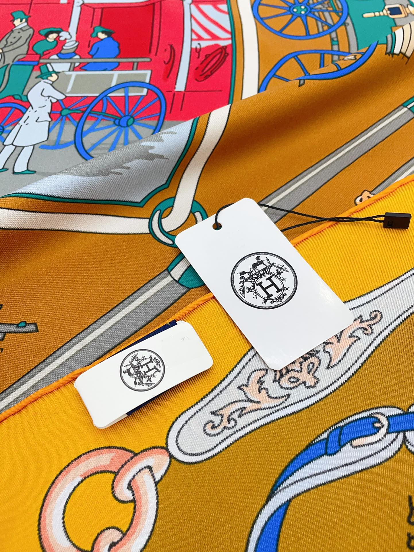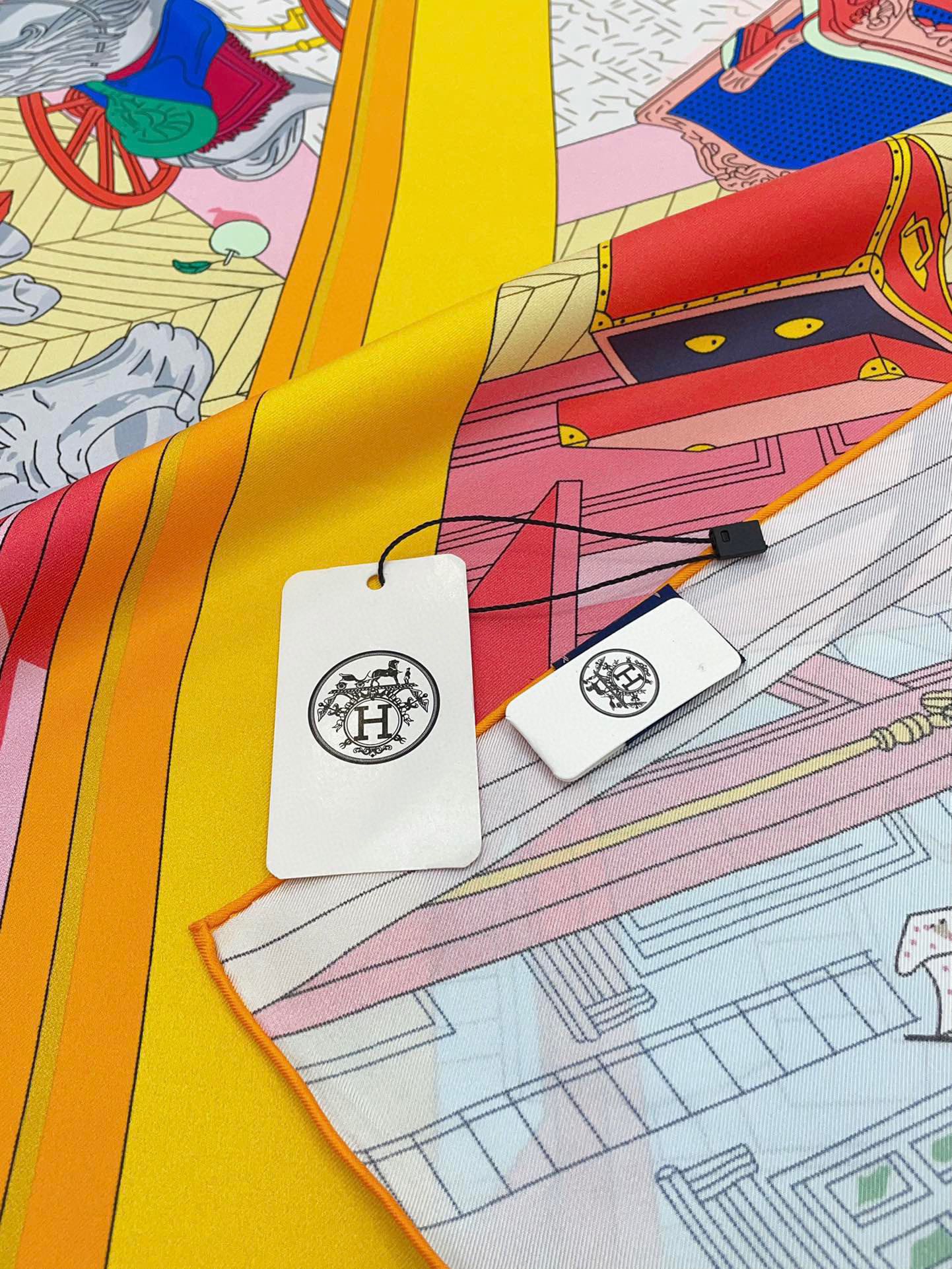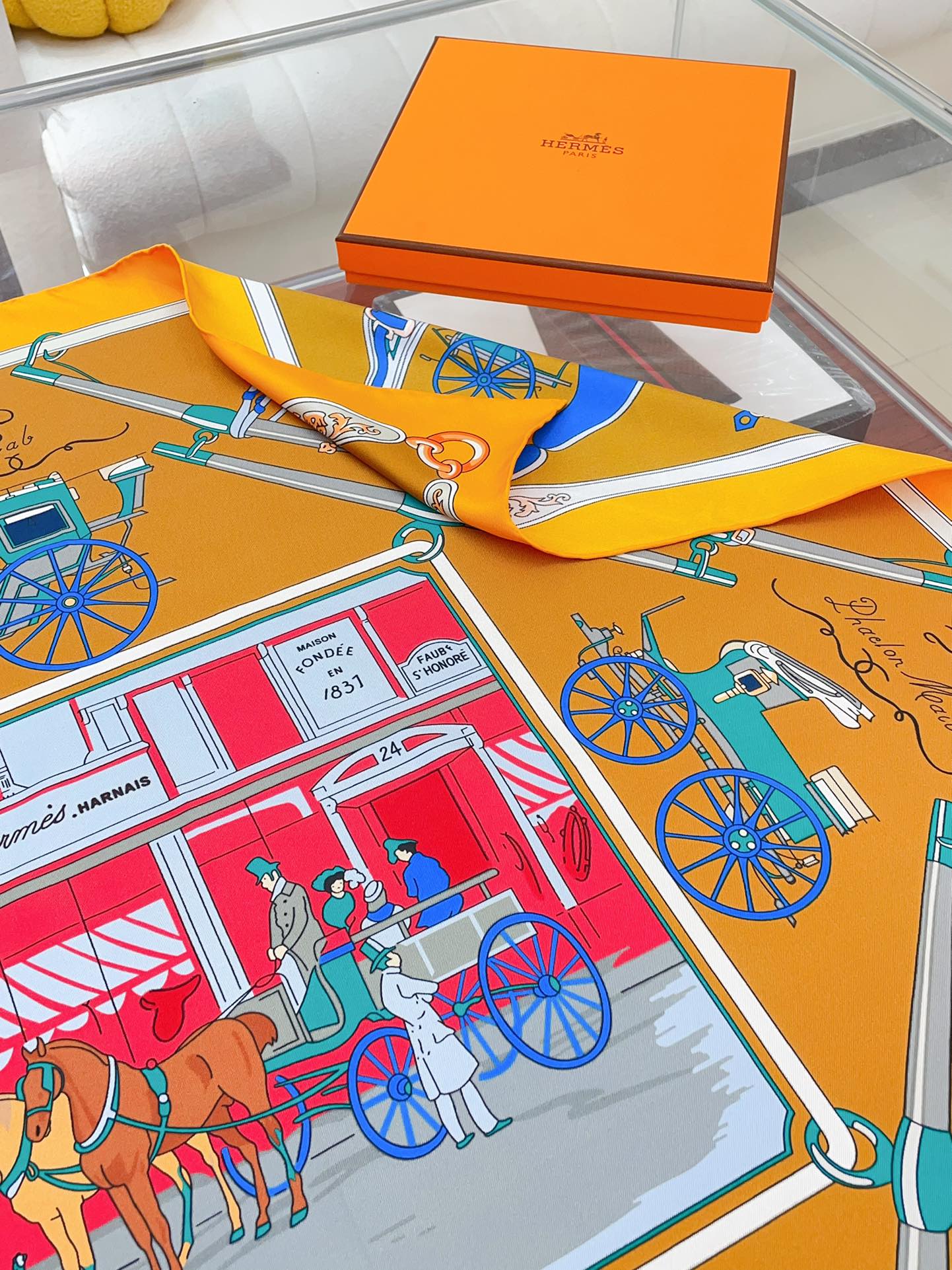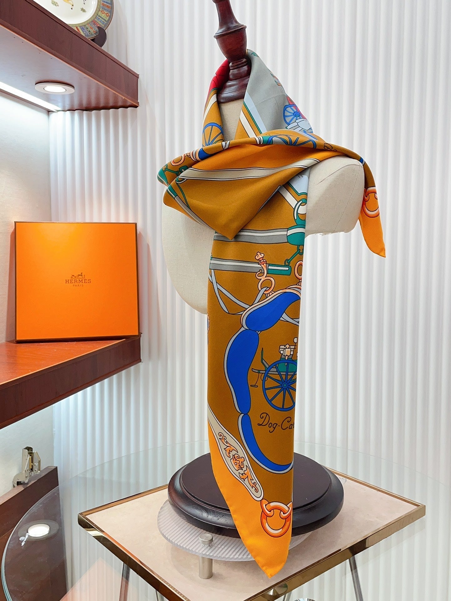 Silla De Gaucho Scarf 90 CM In Yellow Orange Colorful Silk Twill 320652