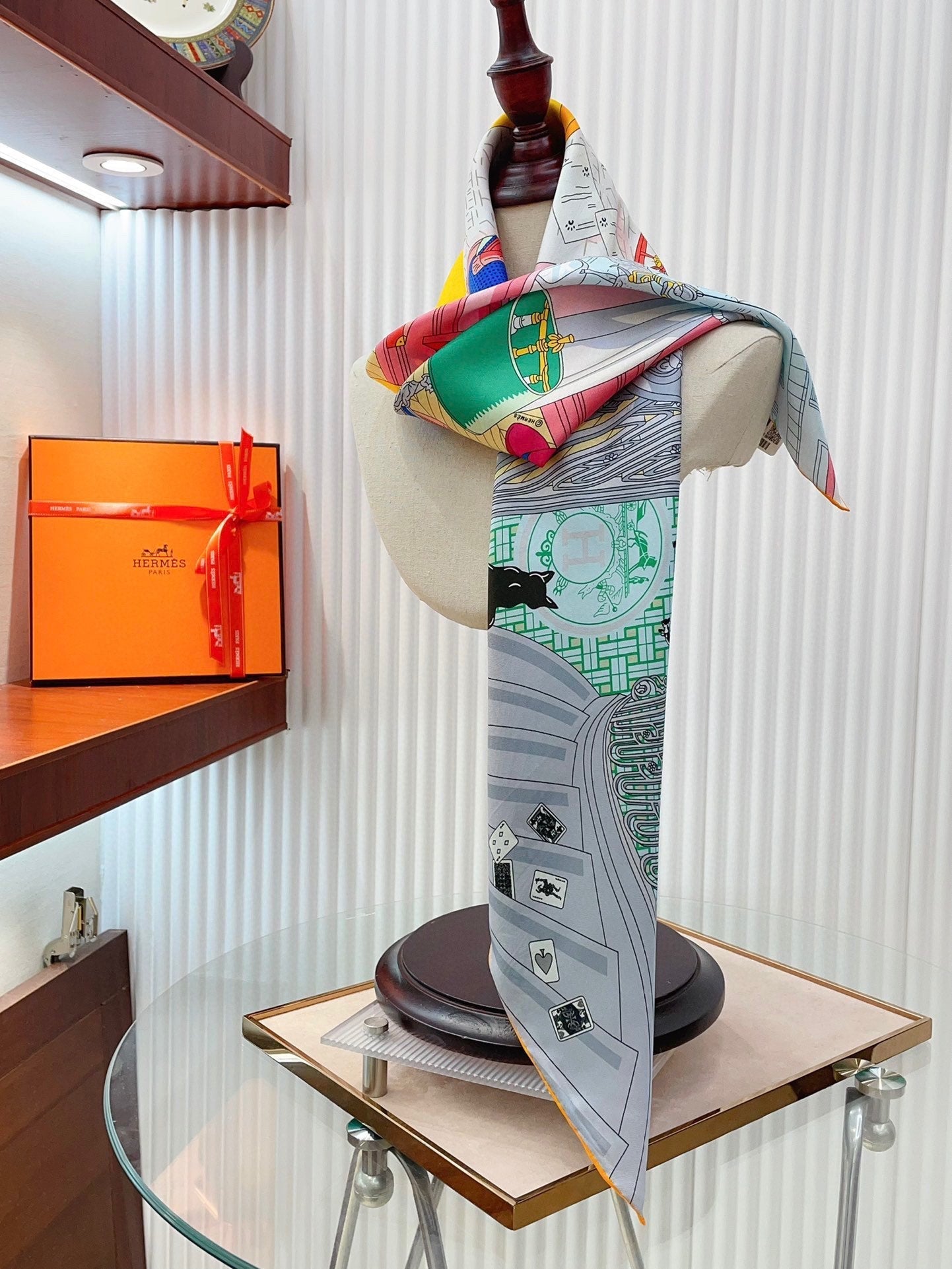 Mystere Au 24 Scarf 90 CM In Grey Colorful Silk Twill 321936