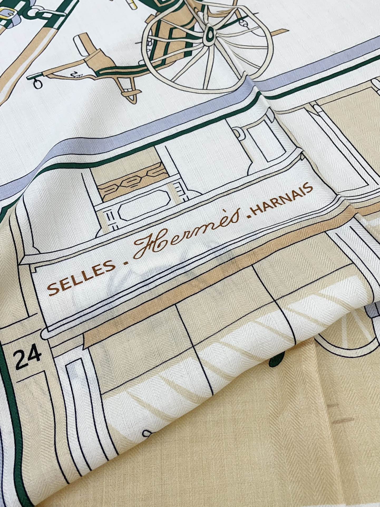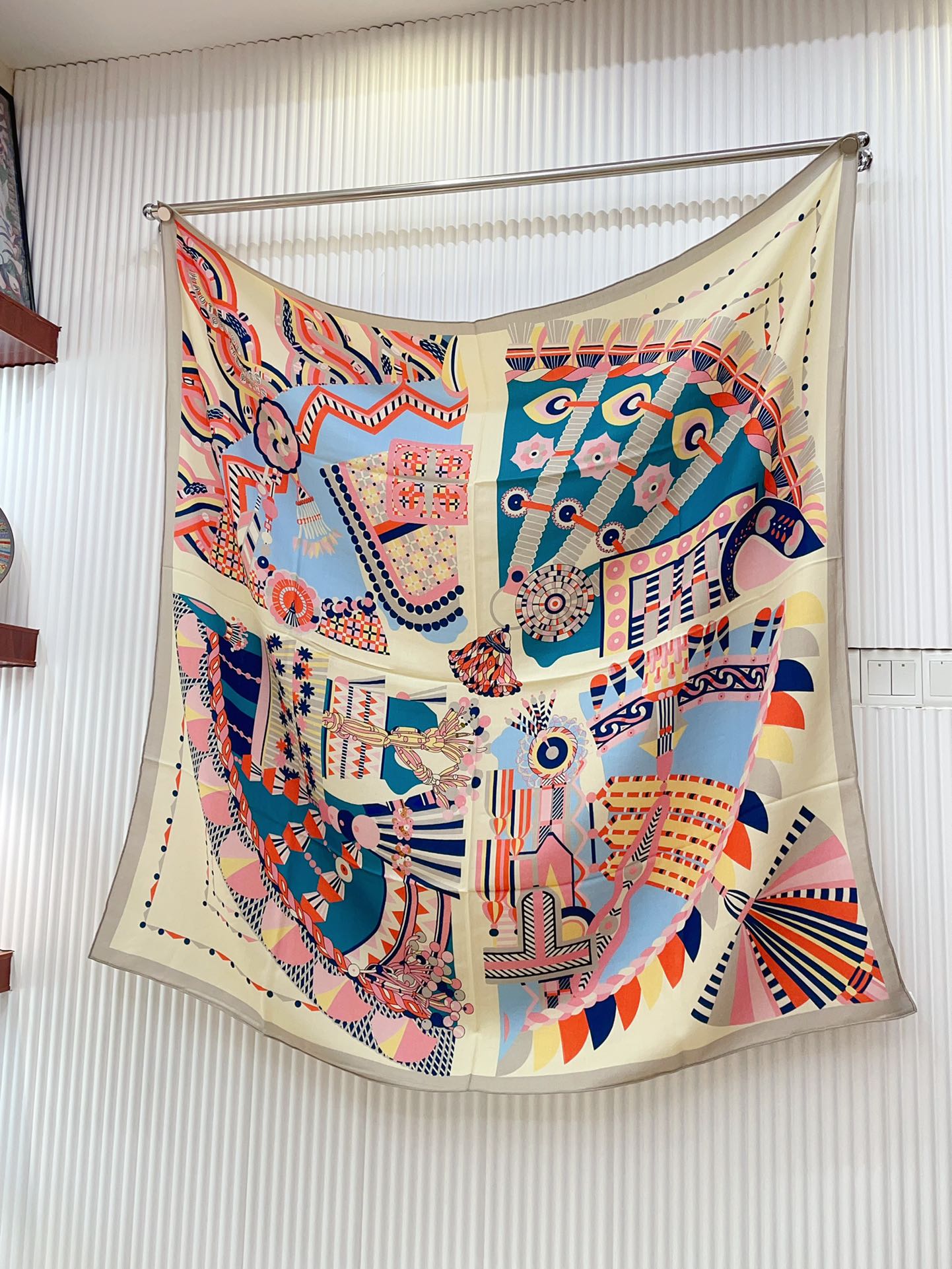 Stately Wheels Scarf 135 CM In Beige Colorful Cashmere And Silk 327468