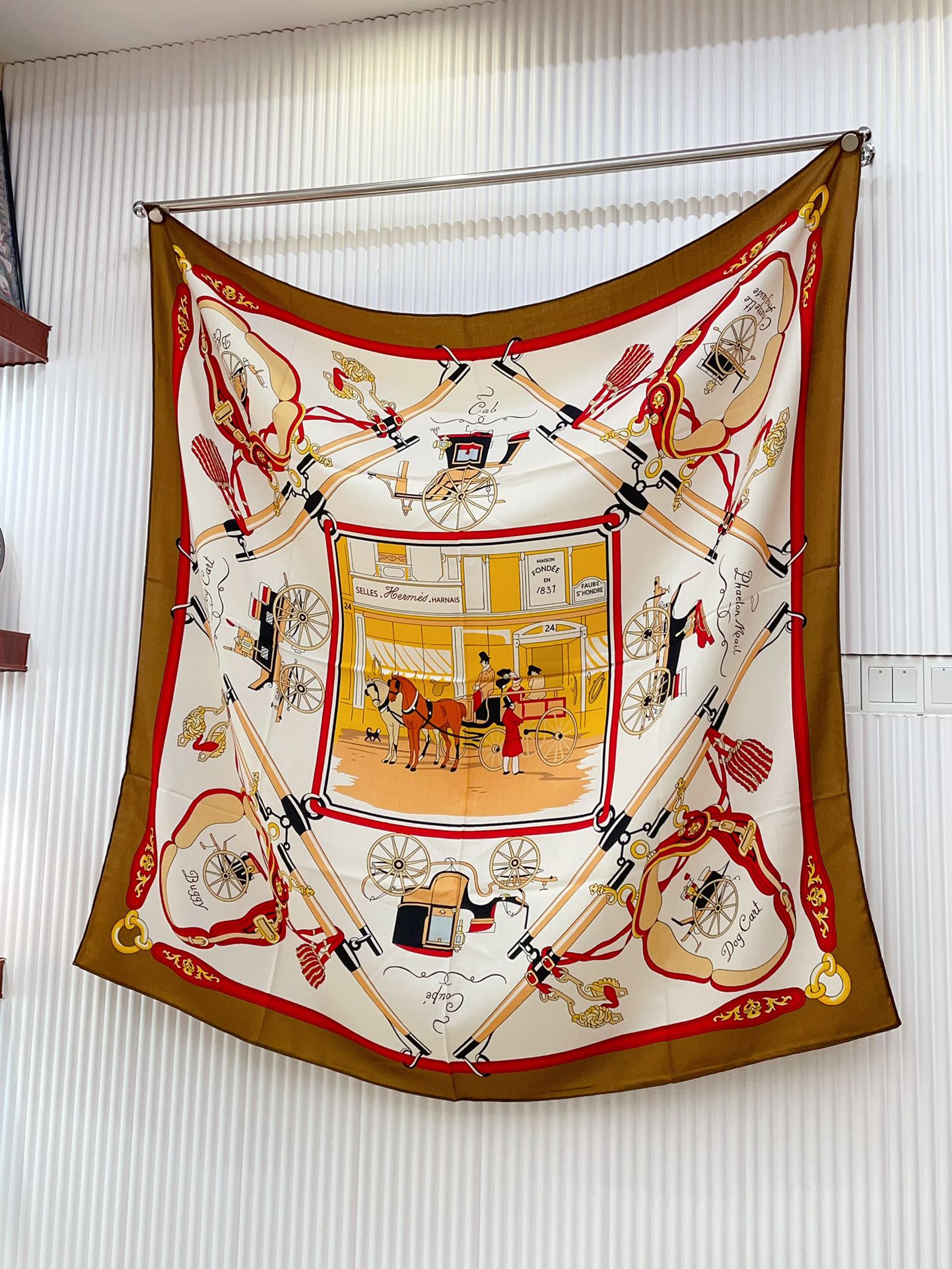 Stately Wheels Scarf 90 CM Red Colorful Silk Twill 312876