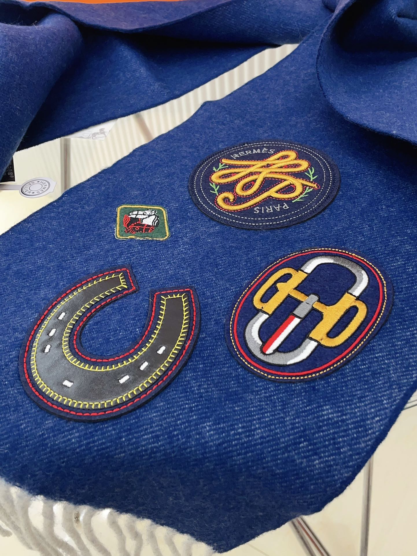 Palonniers Scarf 135 CM In Navy Blue Colorful Cashmere And Silk 327473