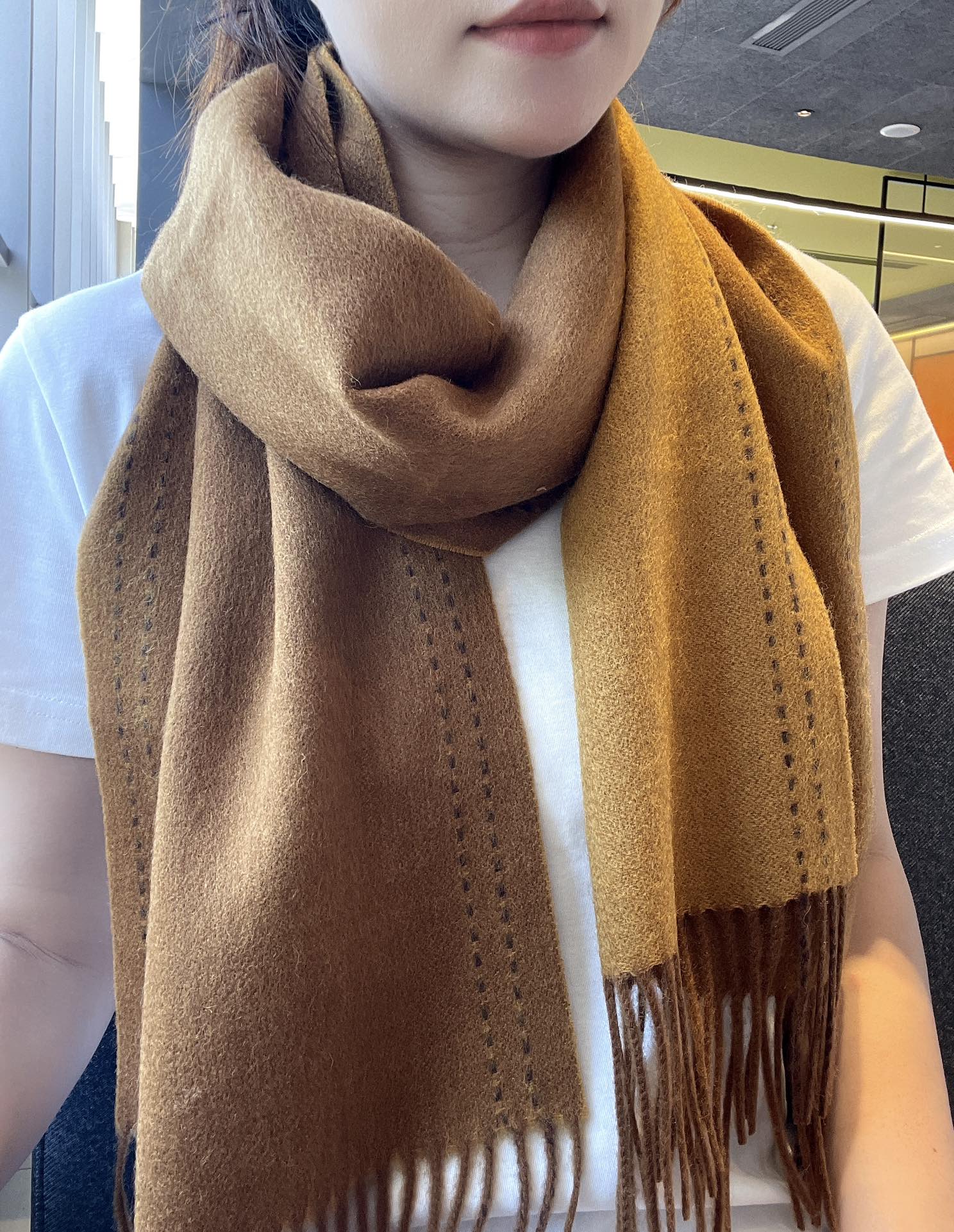 CASAQUE ENTRELACS EQUESTRES 190 CM SCARF IN COPPER BROWN CASHMERE