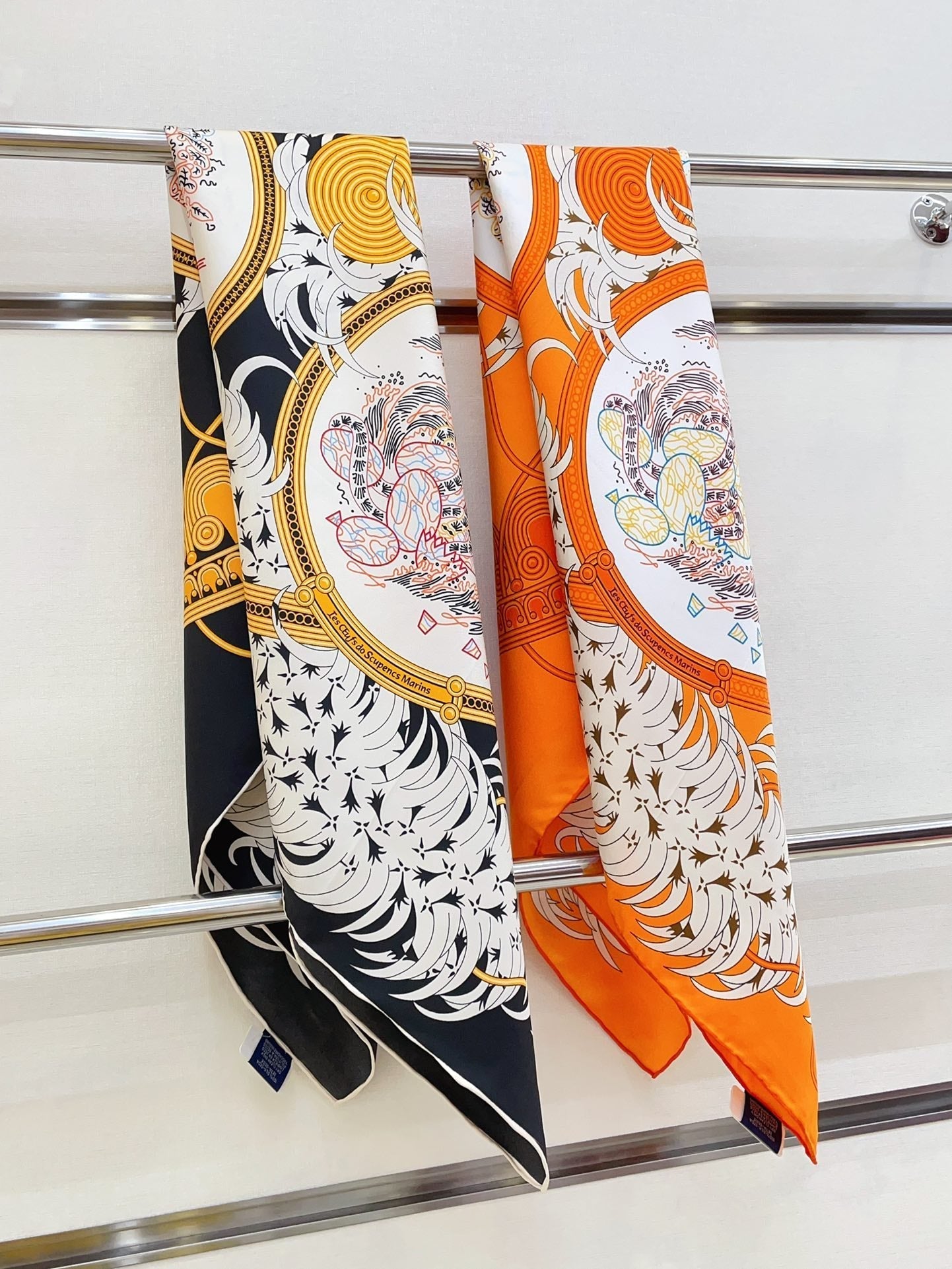 Carres Volants Scarf 90 CM In Orange Colorful Silk Twill 244995