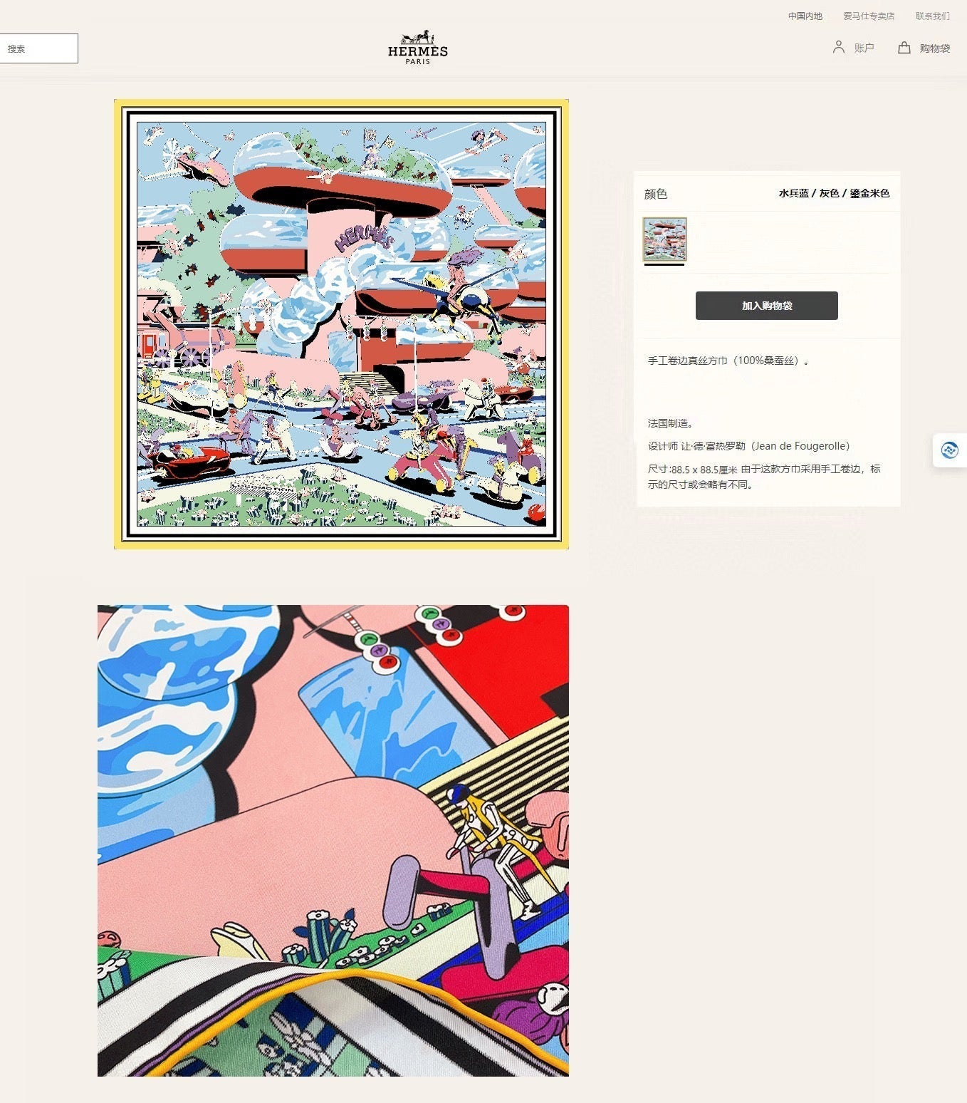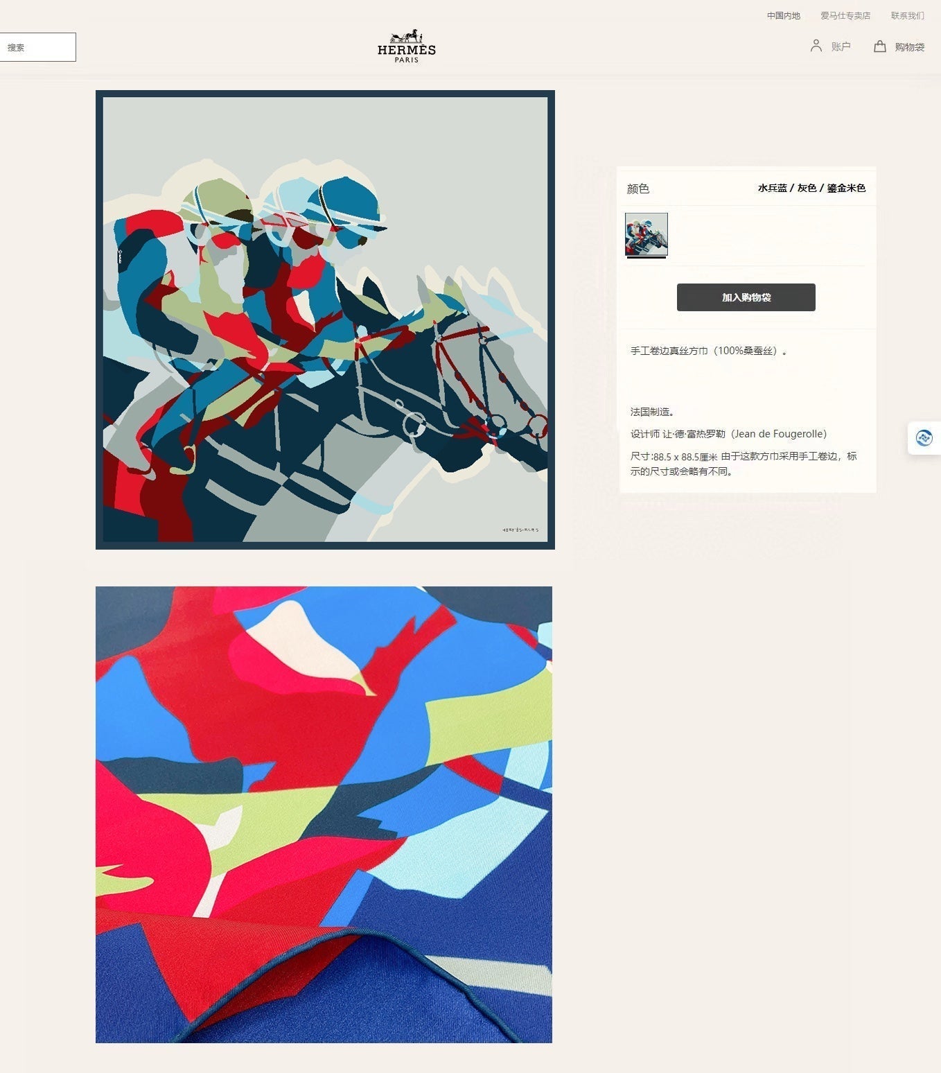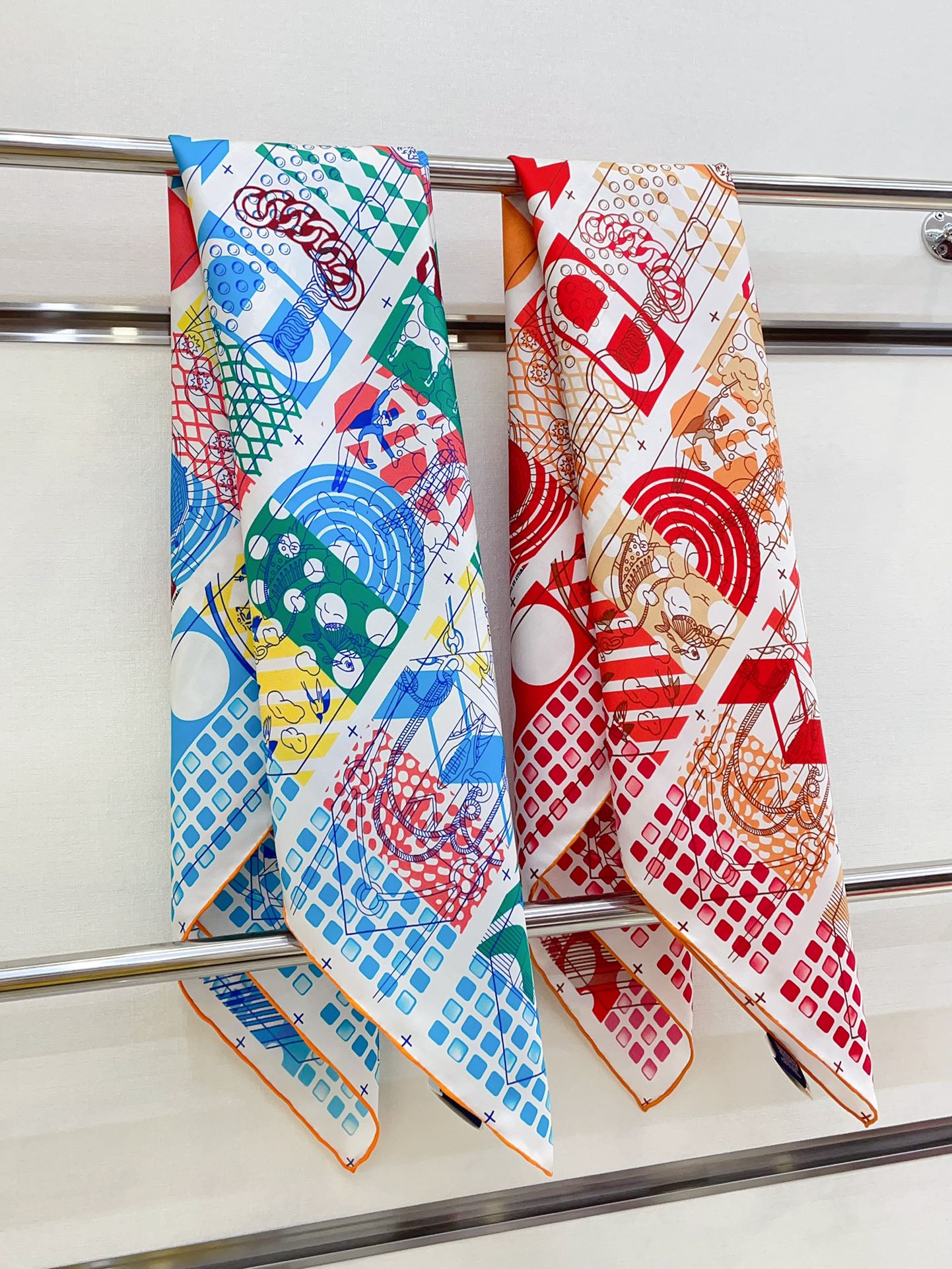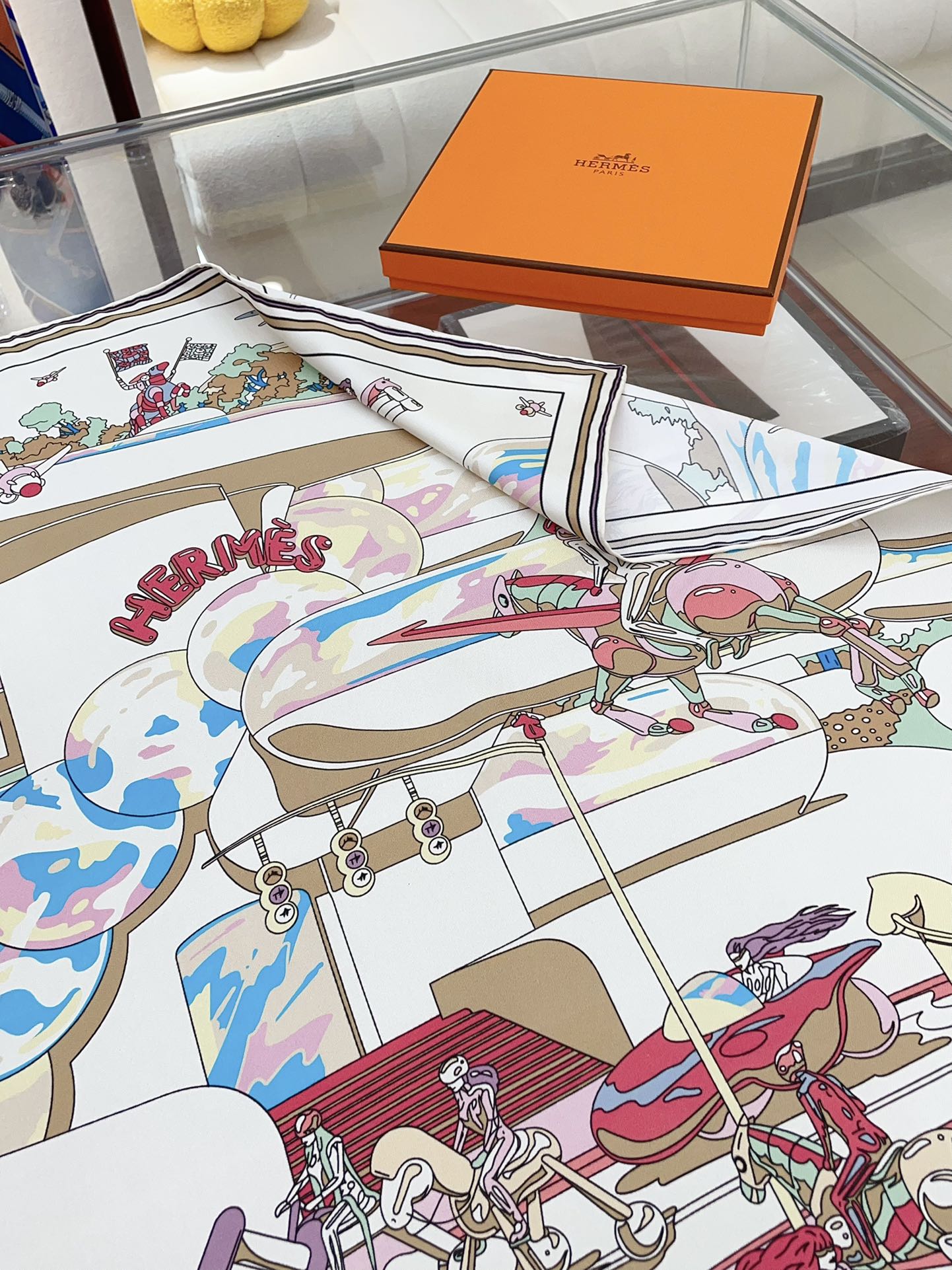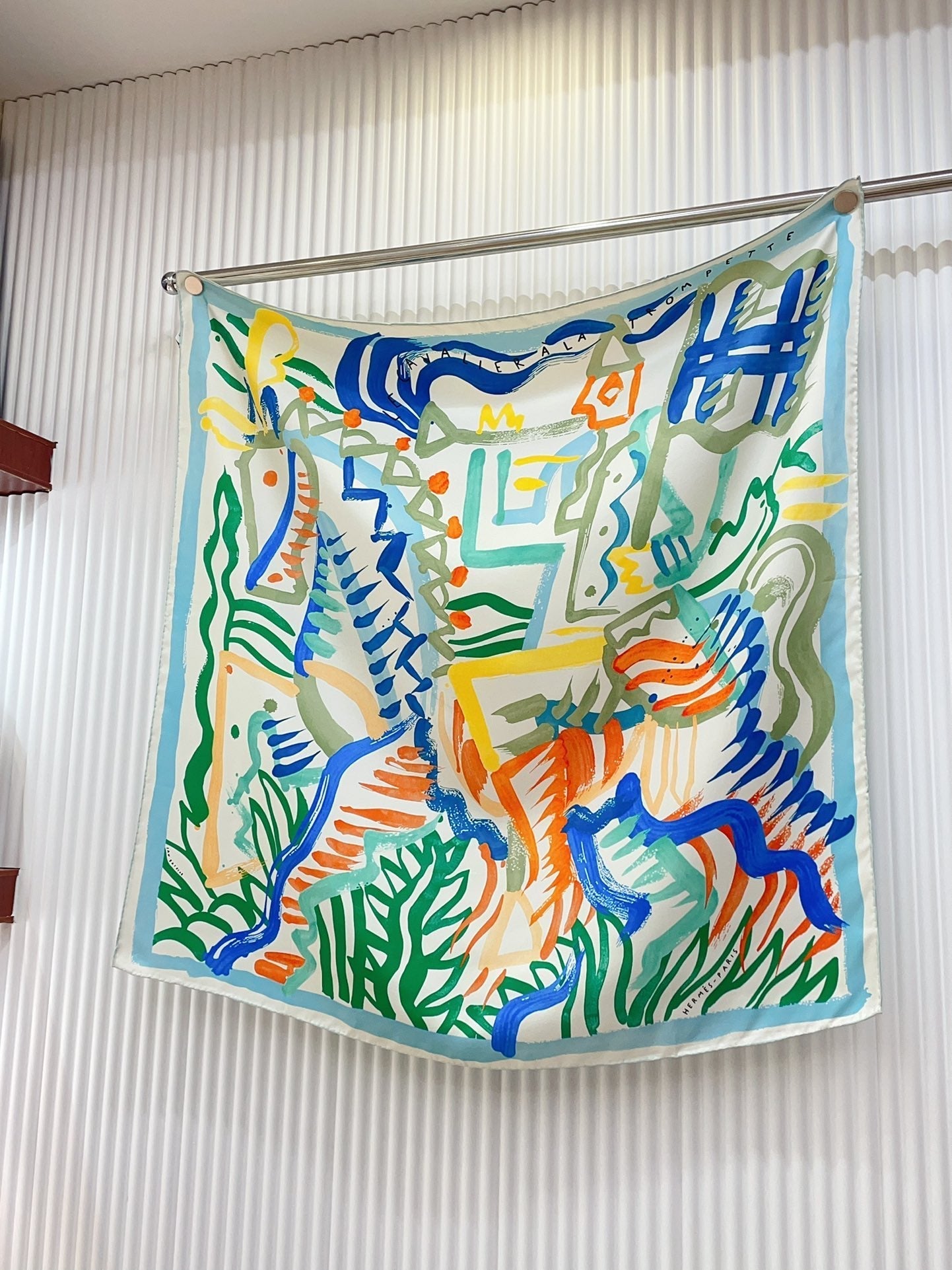 Le Cavalier A La Trompette Scarf 90 CM In Colorful Silk 208590