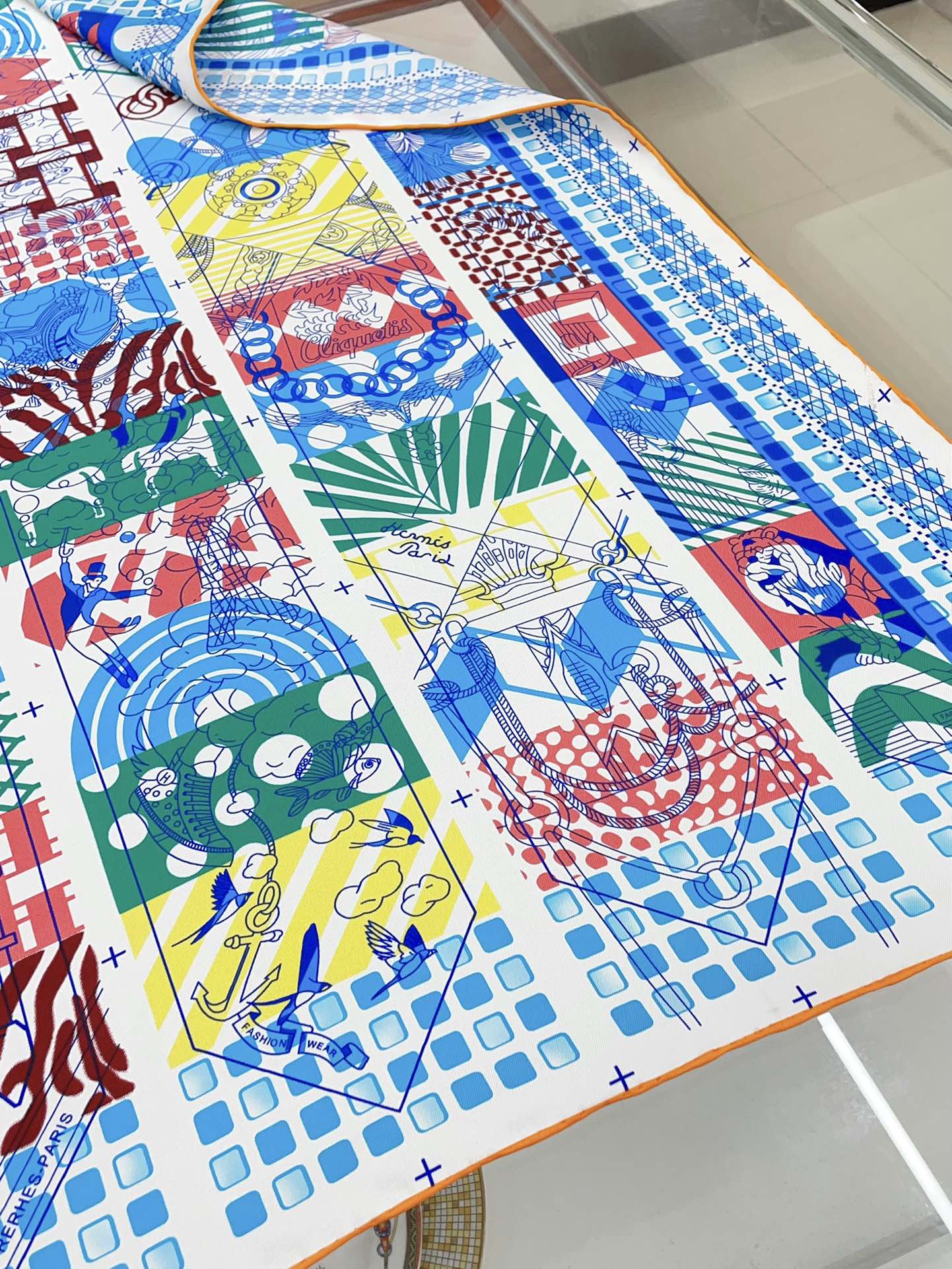 Haute Parure Scarf 90 CM In Blue Colorful Silk Twill 239535