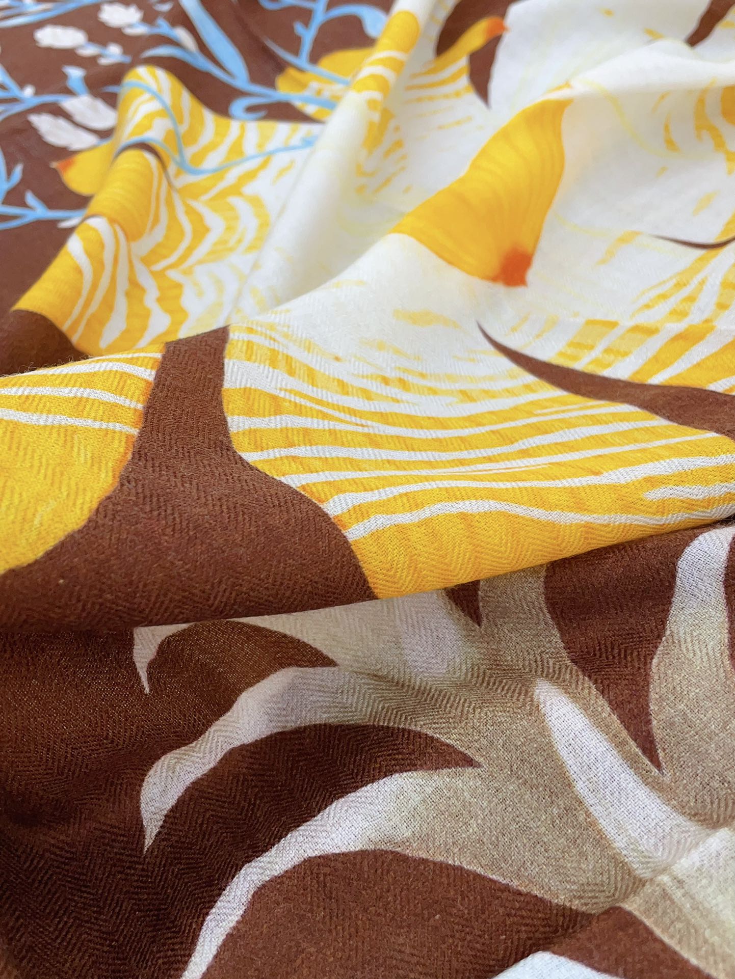 Carré Index Bromeliaceae 135 CM In Brown Colorful Silk Cashmere 228991