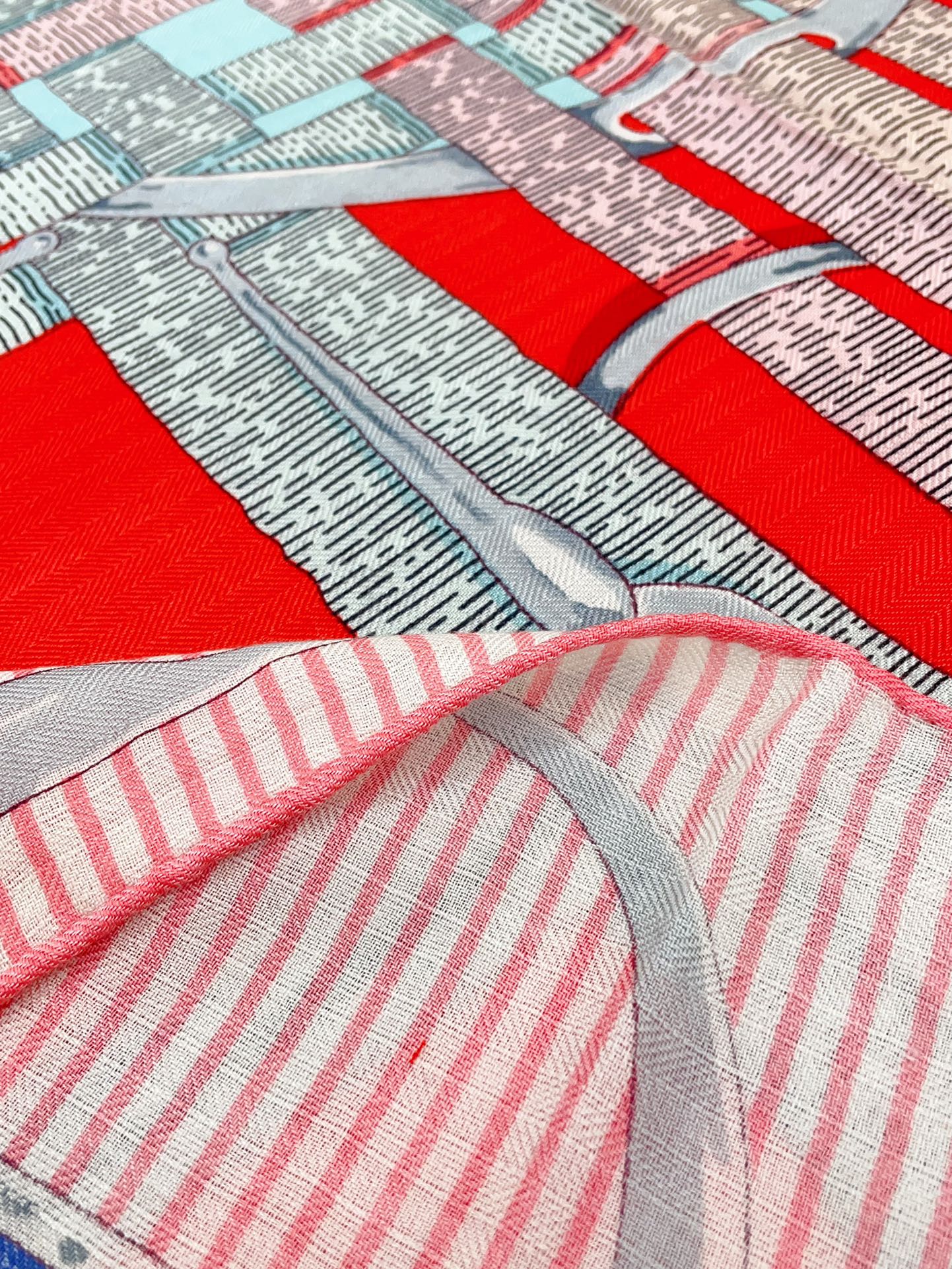 Silla De Gaucho Scarf 90 CM In Light Blue Colorful Silk Twill 231854