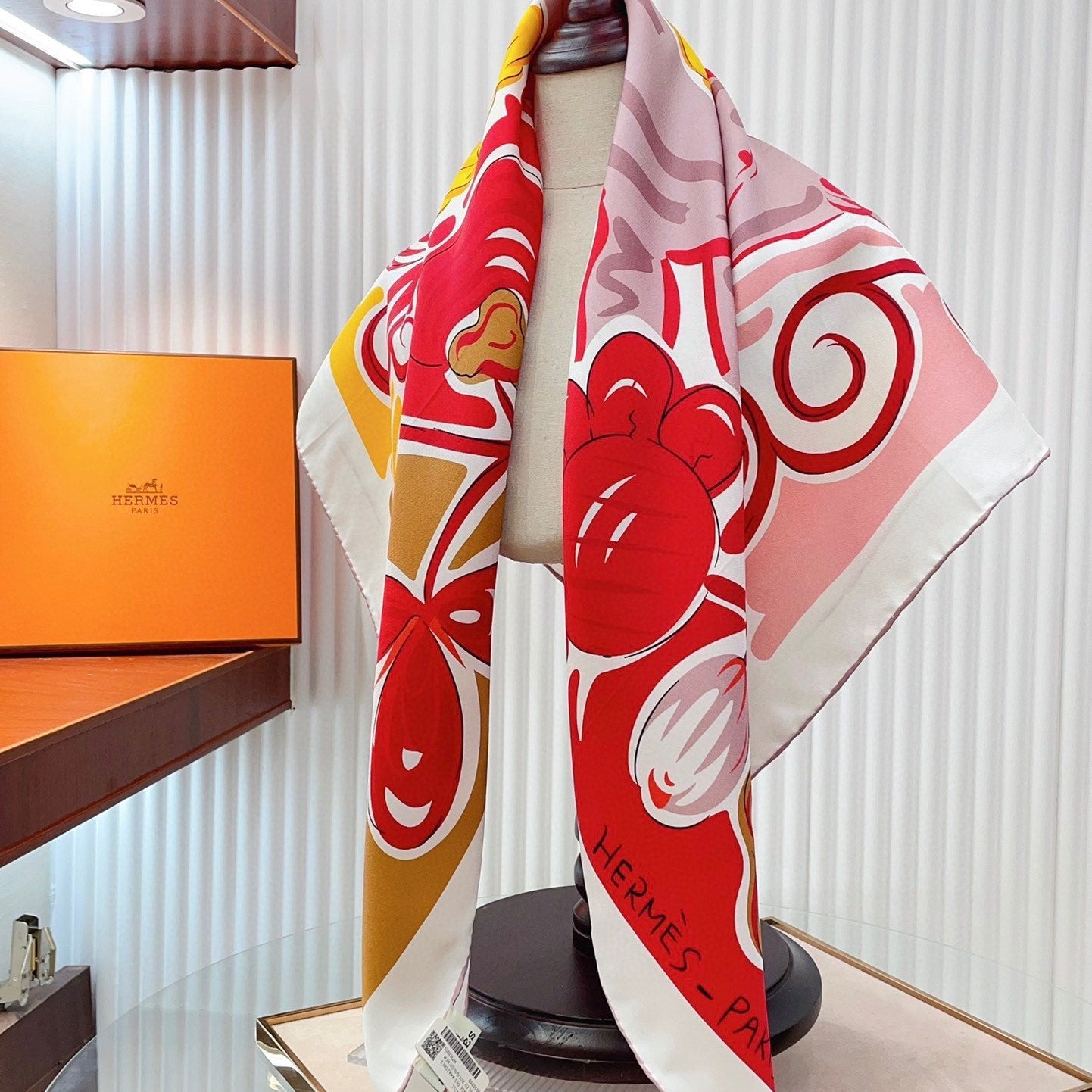 Le Cheval De Kazumi Scarf 90 CM Red Colorful Silk Twill 347388