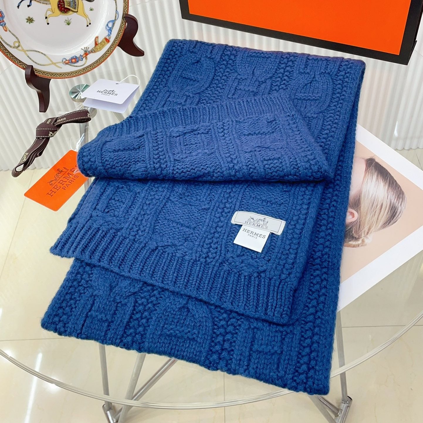 Faubourg Muffler Scarf 170 CM Blue Cashmere Handwoven 356202