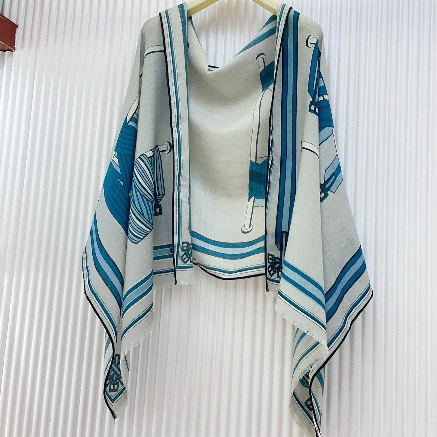 College Poncho 130 CM In Grey Blue Colorful Cashmere 371988