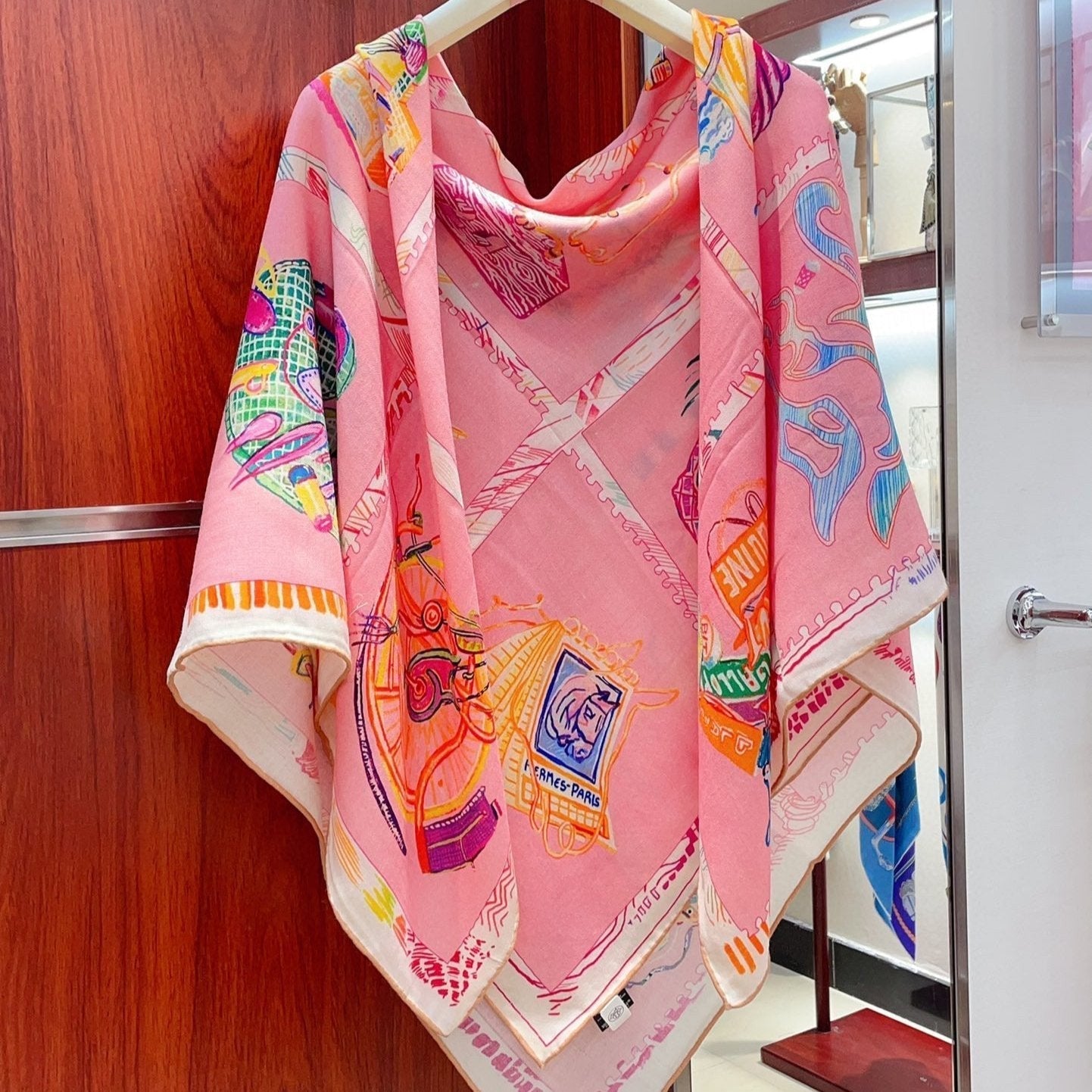 Square Scarf 135 CM Colorful Cashmere And Silk 365932