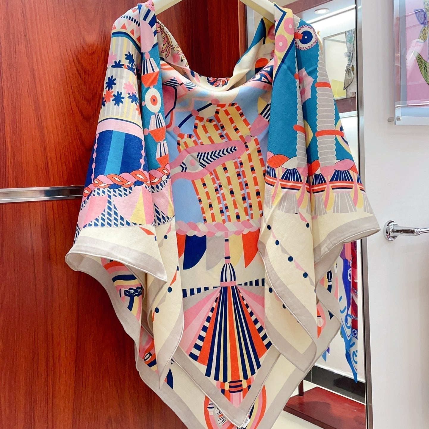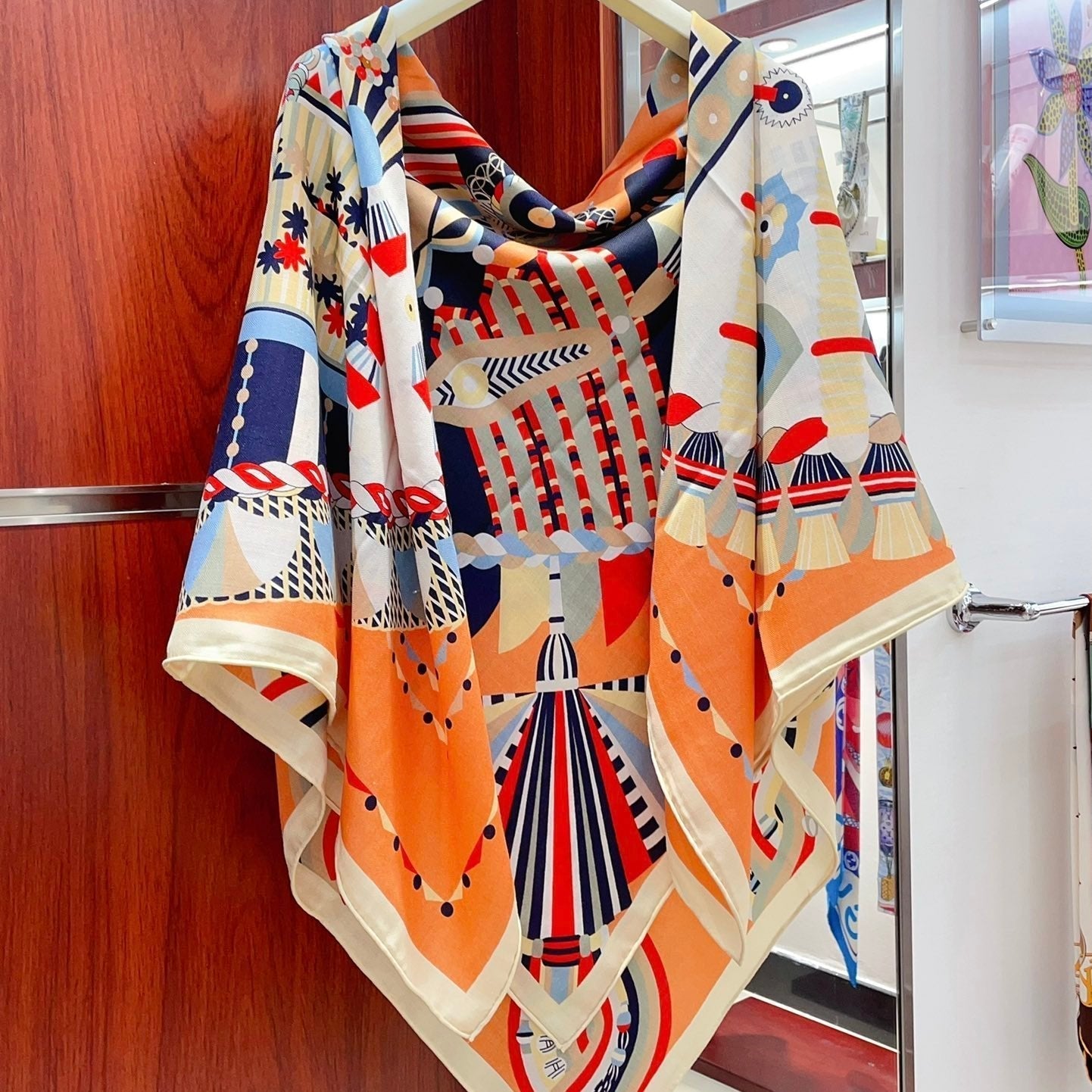 Carré Harnais De Cœur Scarf 140 CM In Orange Colorful Cashmere And Silk 335856