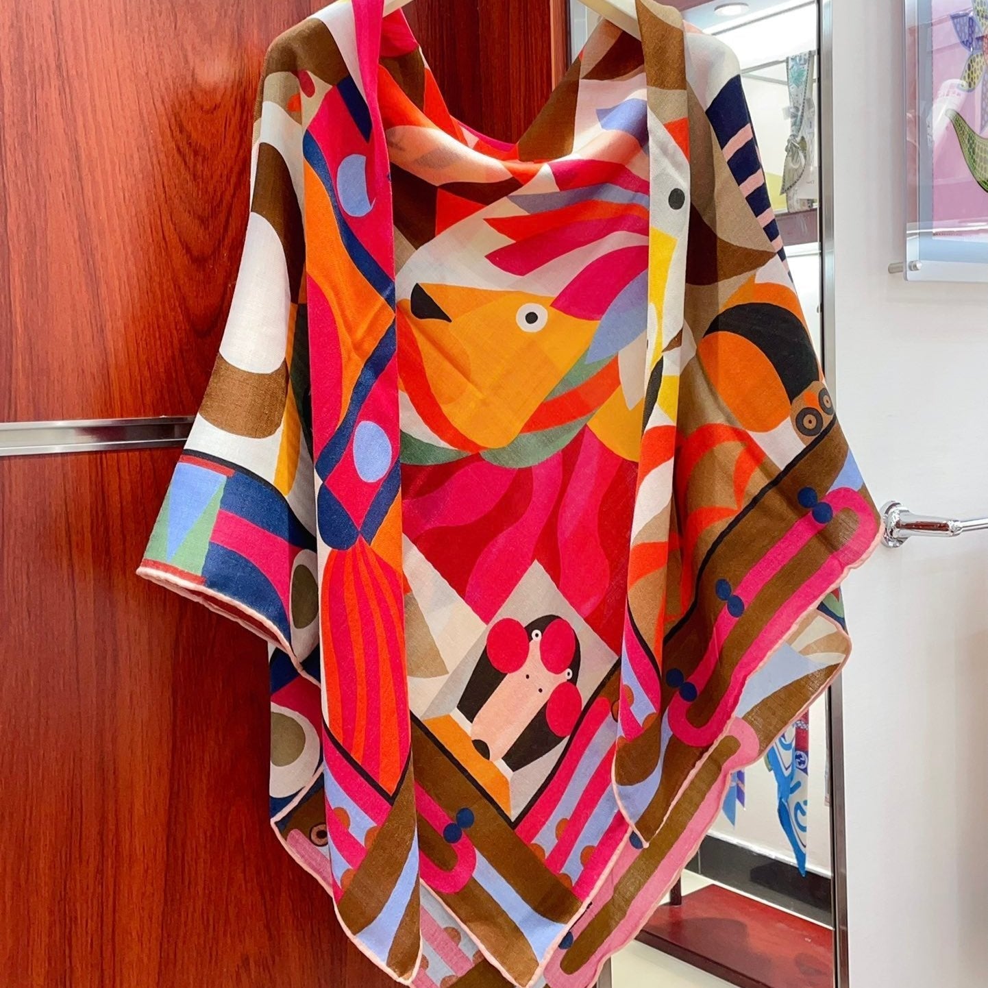 Cavalier en Formes shawl 140 CM In Red Colorful Cashmere And Silk 331717
