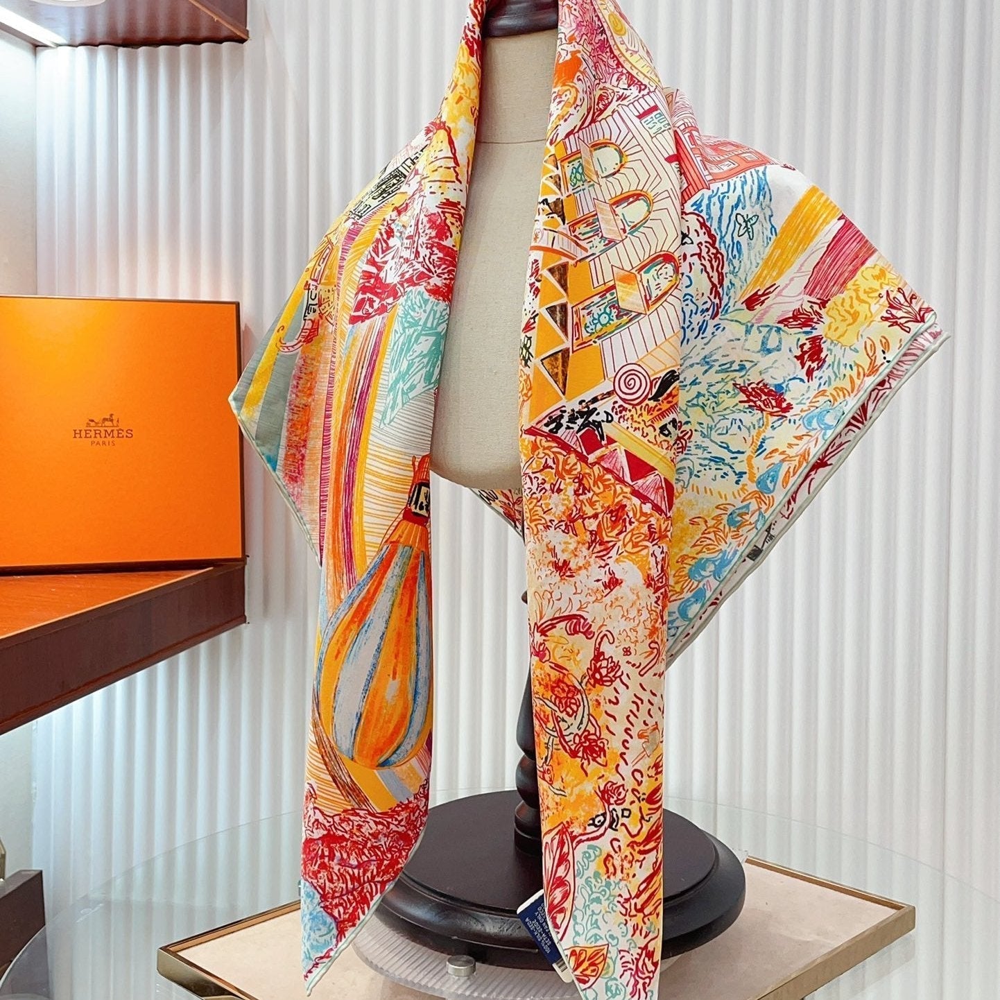 Carré Harnais De Cœur Scarf 90 CM In Orange Colorful Silk 306470