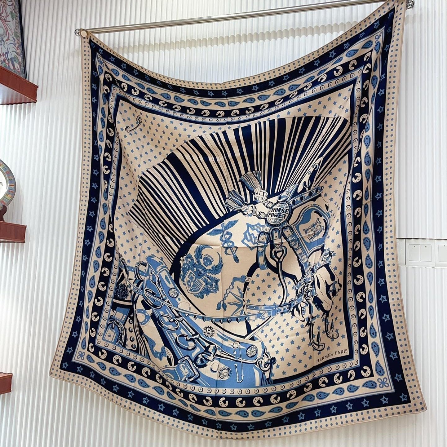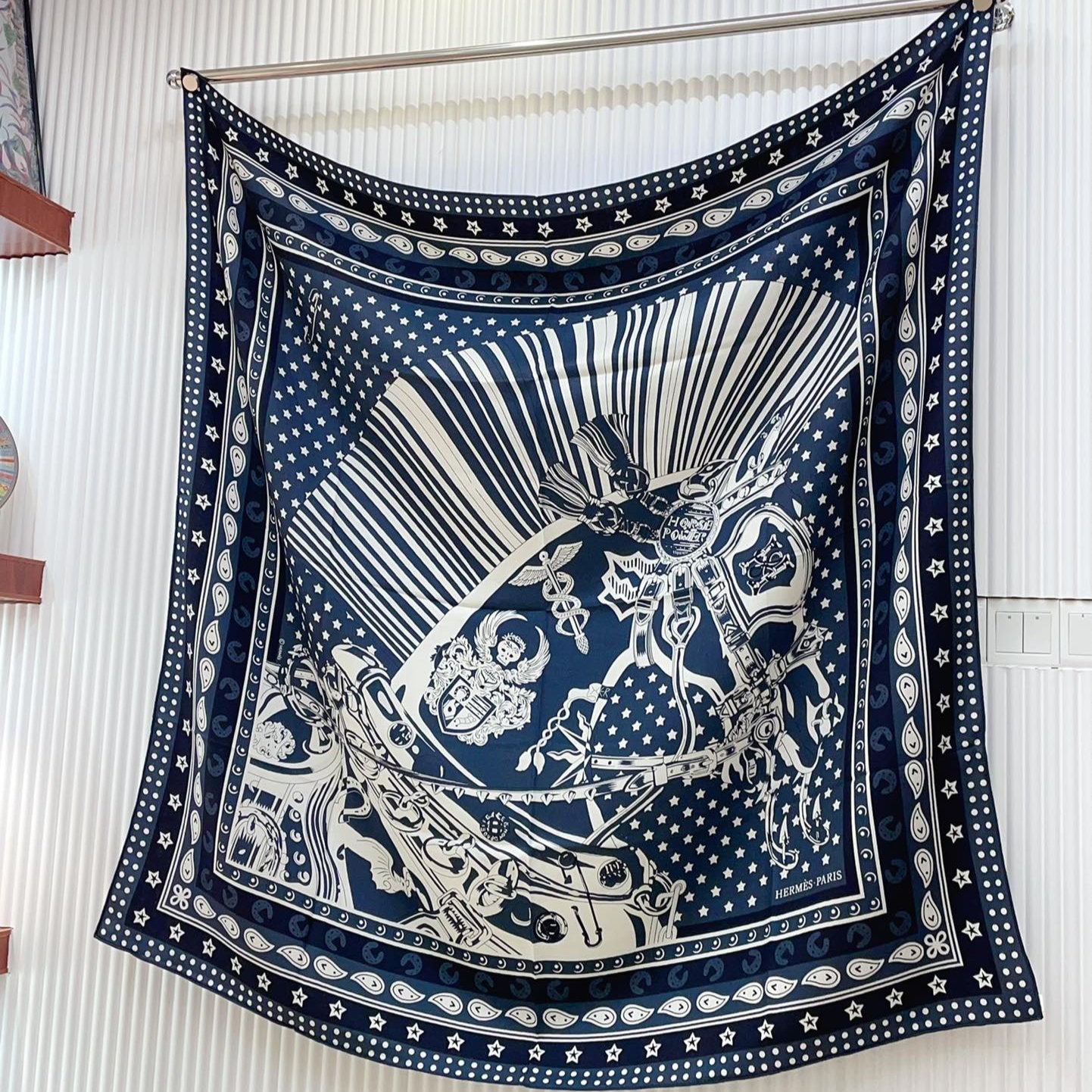 Parade Scarf 90 CM In Blue Colorful Silk Twill 310307