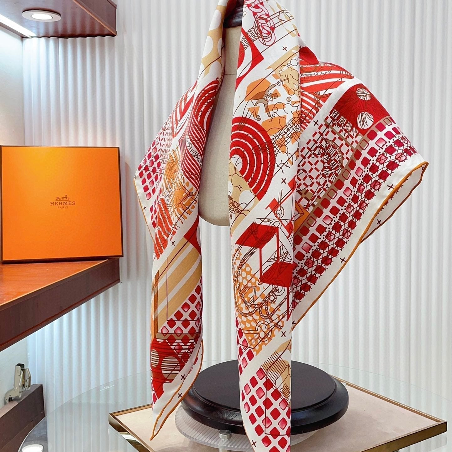 Stately Wheels Scarf 90 CM Red Colorful Silk Twill 312876