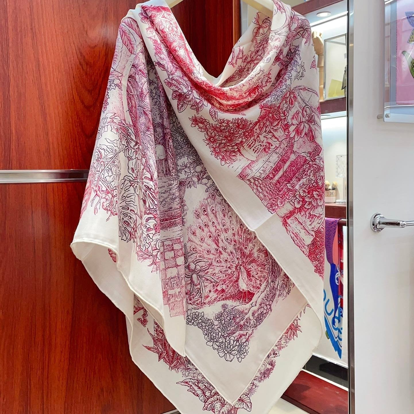 Le Jardin De Leila Au Bloc Shawl 135 CM In Pink Red Cashmere And Silk 316264