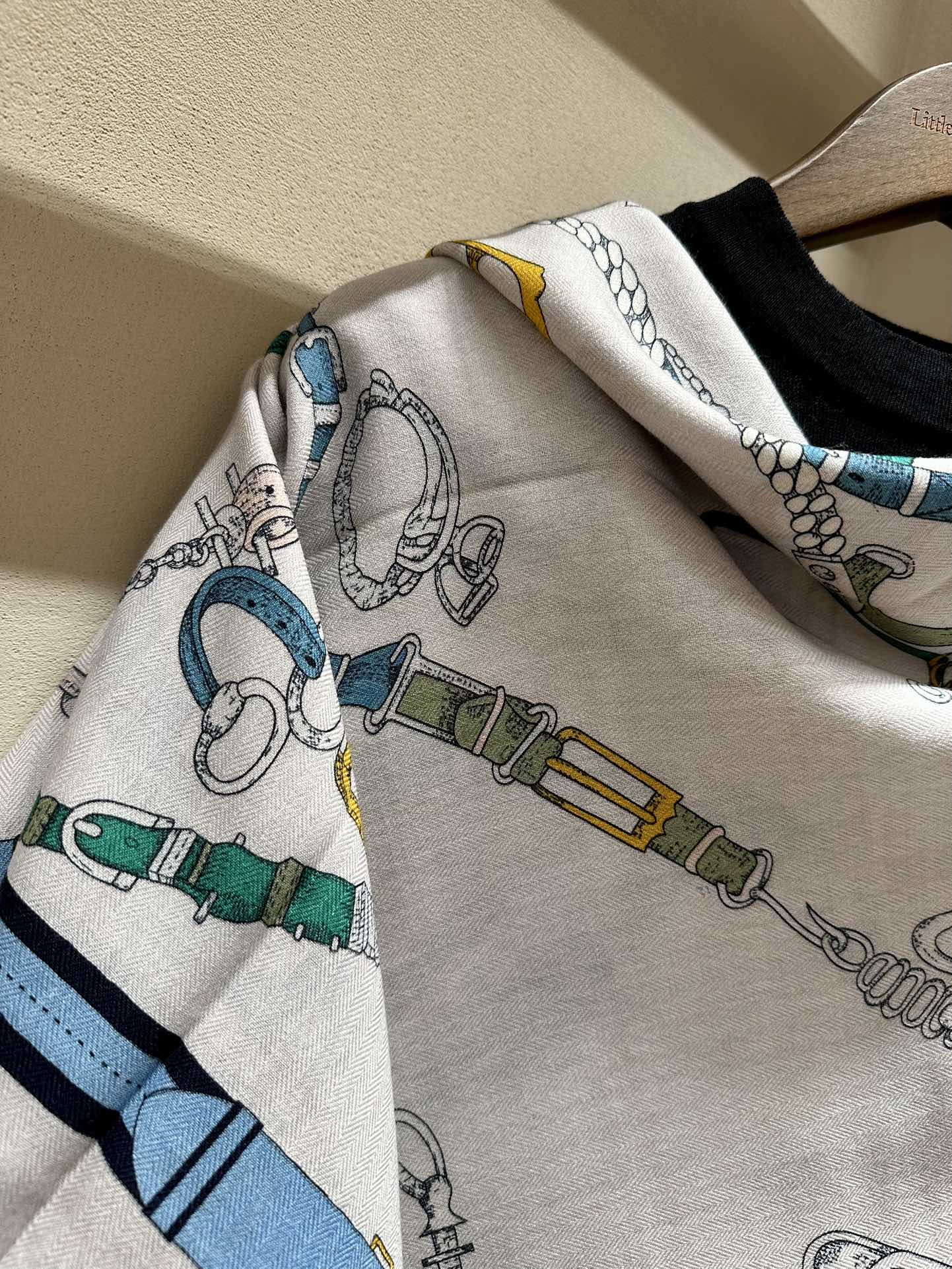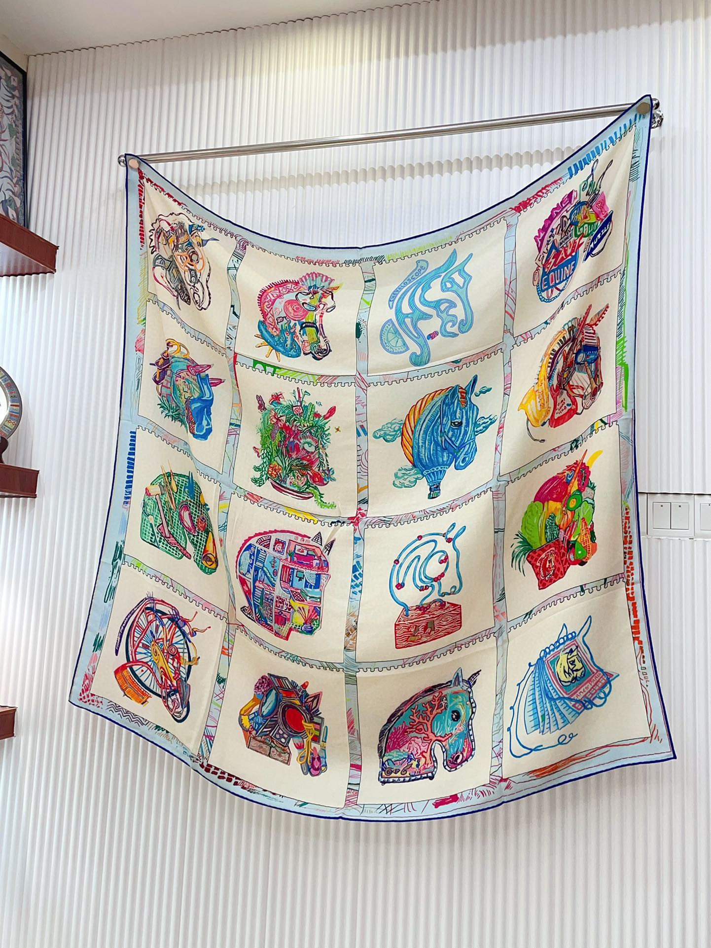 Chevaux Dechaines Shawl 135 CM IN Light Blue Colorful Cashmere Silk 373686