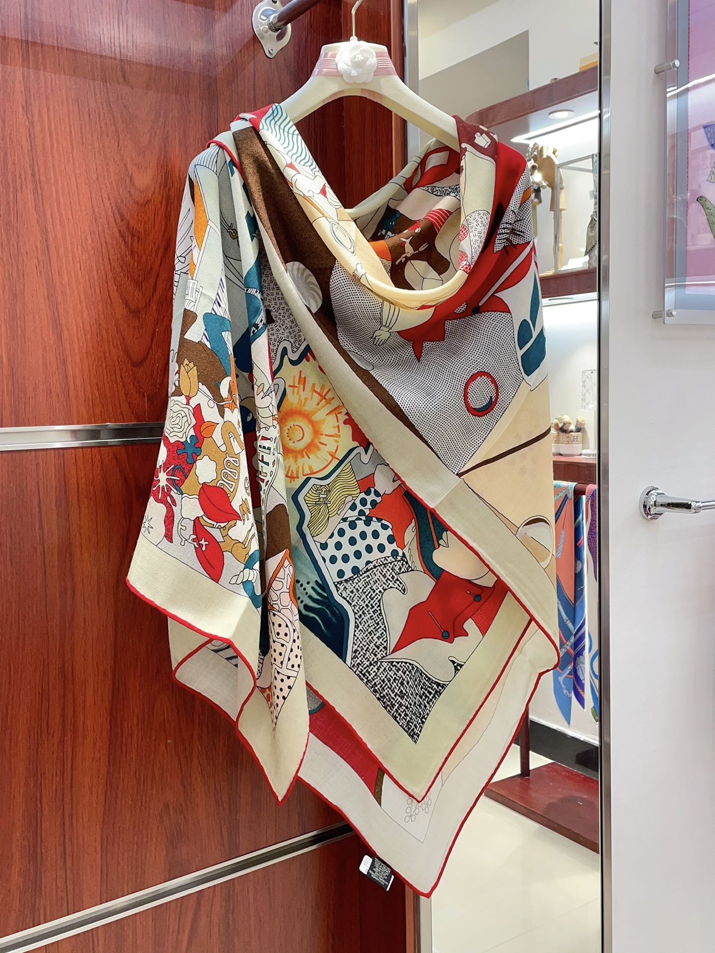 Brides Et Destin Scarf 140 CM In Red Colorful Cashmere Silk 375372