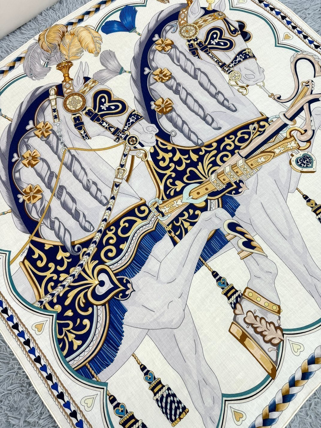 Chevaux Dechaines Shawl 135 CM IN Dark Blue Colorful Cashmere Silk 373682