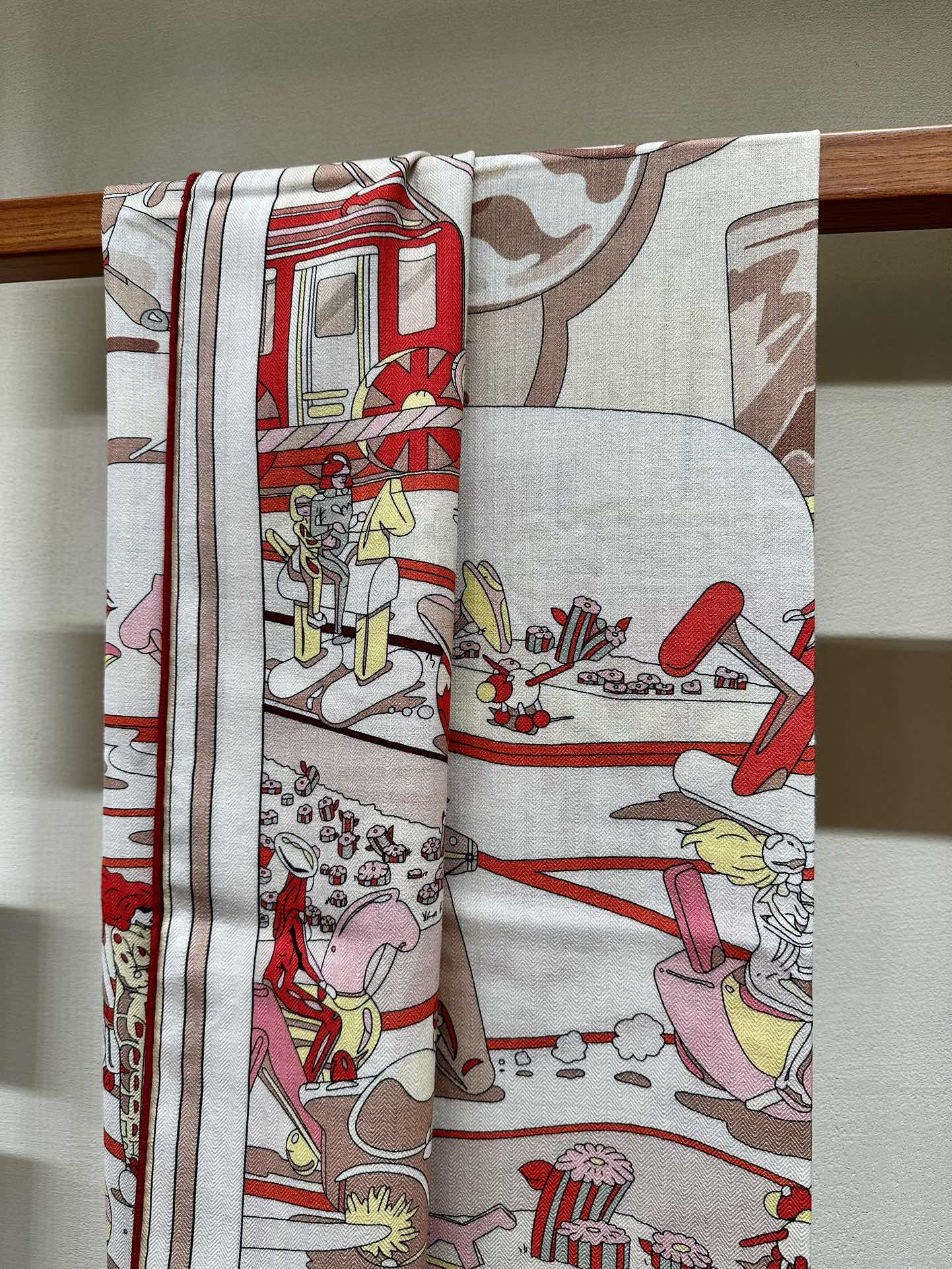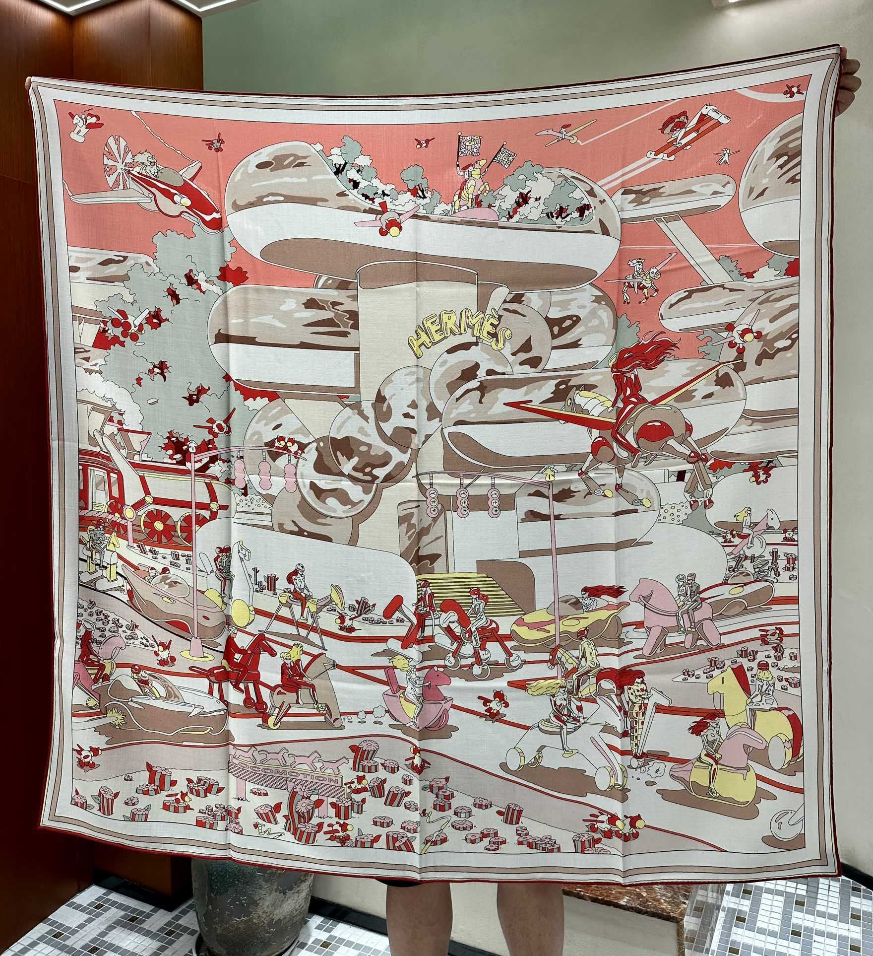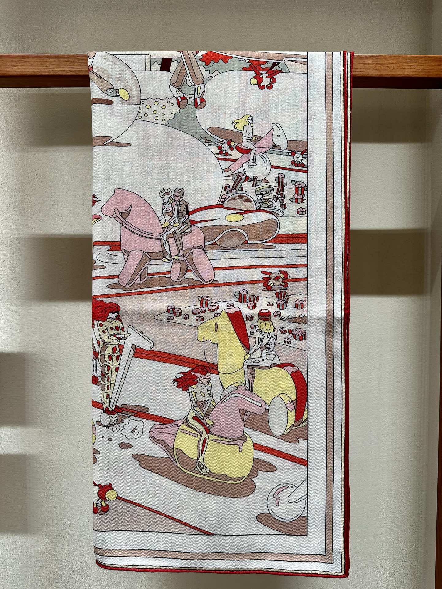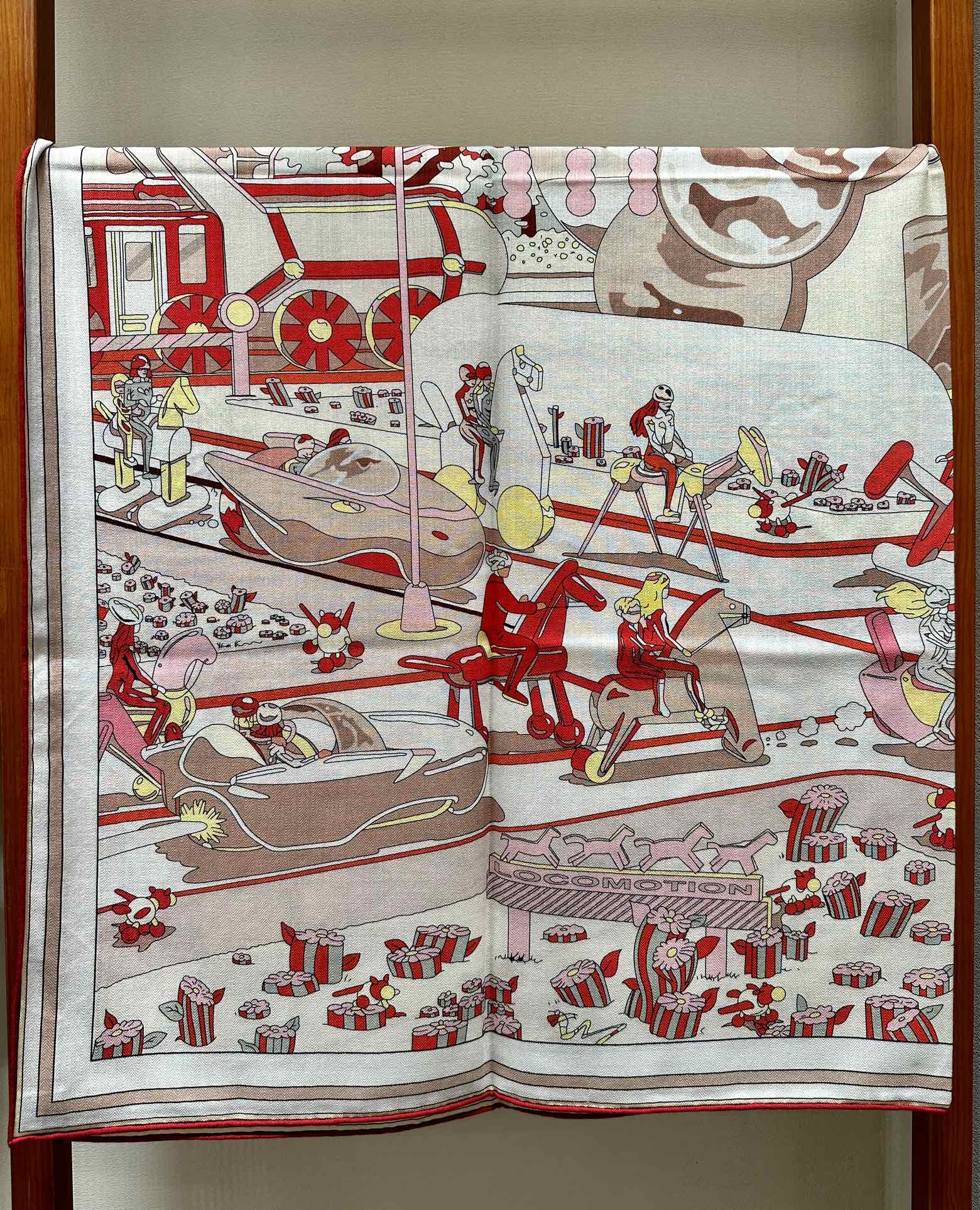 Chevaux Dechaines Shawl 135 CM IN Red Colorful Cashmere Silk 373683