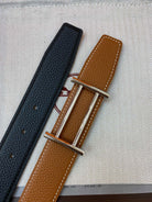 H RIDER RIVERSIBLE BELT 32MM SILVER BUCKLE PRUSSIAN BLUE GOLD LEATHER