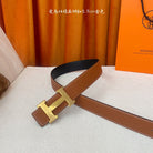 HM Gold Buckle H Belt 38mm Brown Calfskin 187183