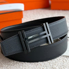 HM H Au Carre Buckle Belt 38mm Black Calfskin 187506