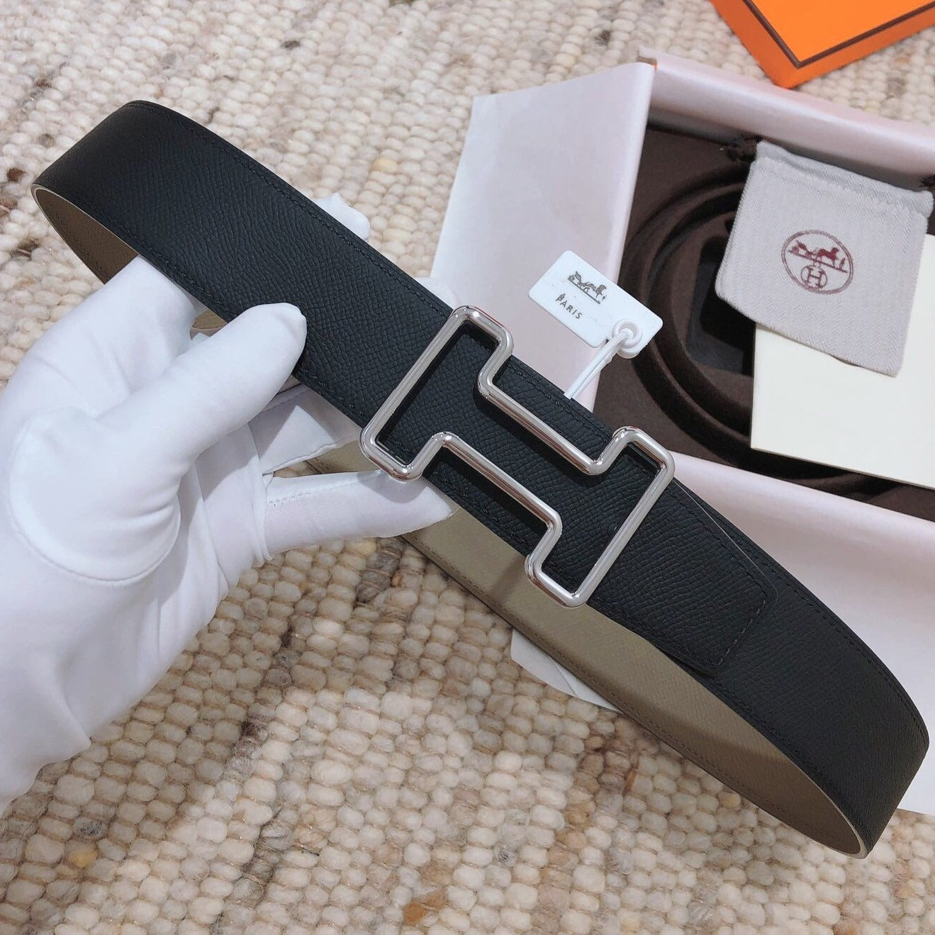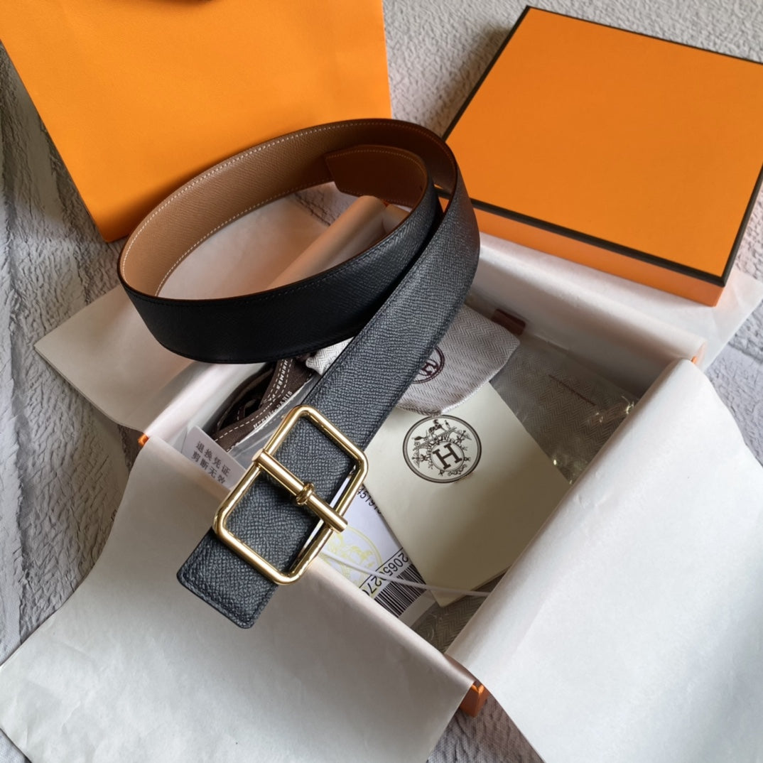 3.8CM BELT H REVERSIBLE BLACK LEATHER
