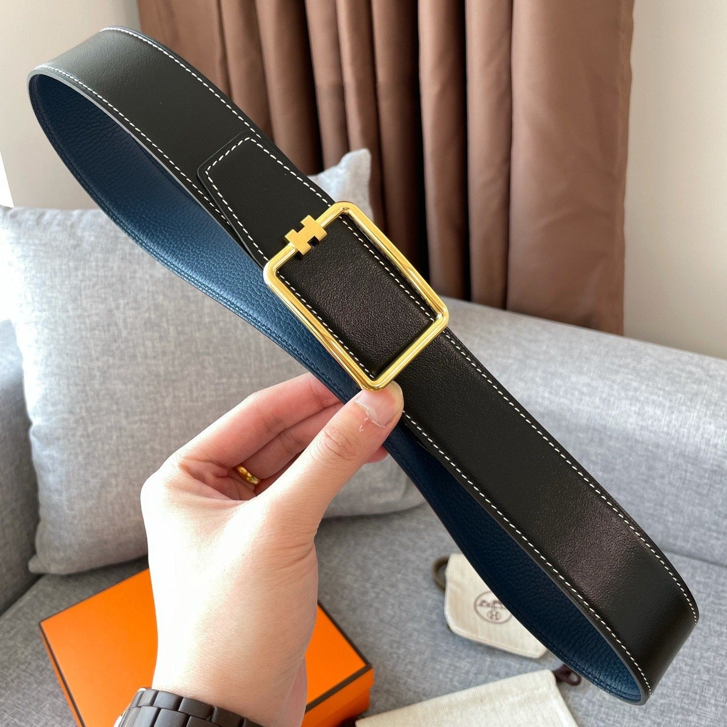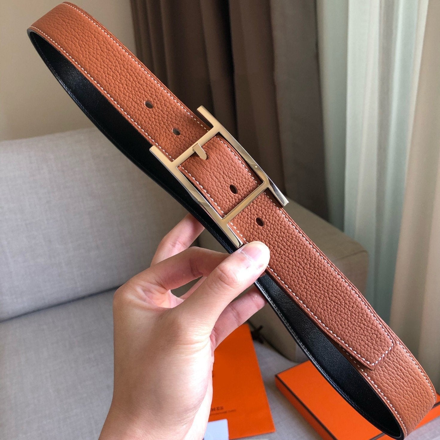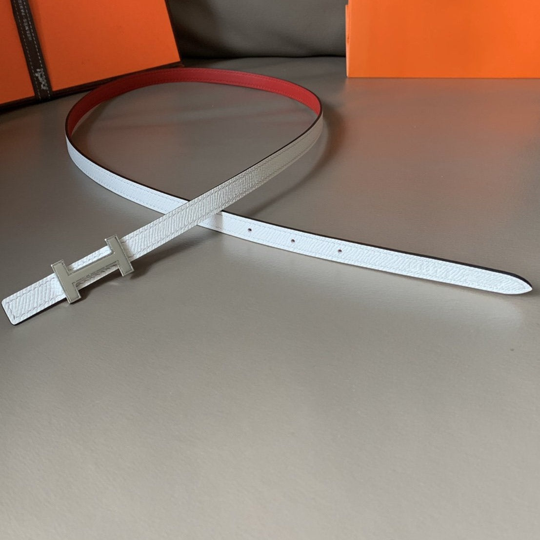 H BELT GOLD BUCKLE 38 MM SMOOTH ORANGE LEATHER REVERSIBLE