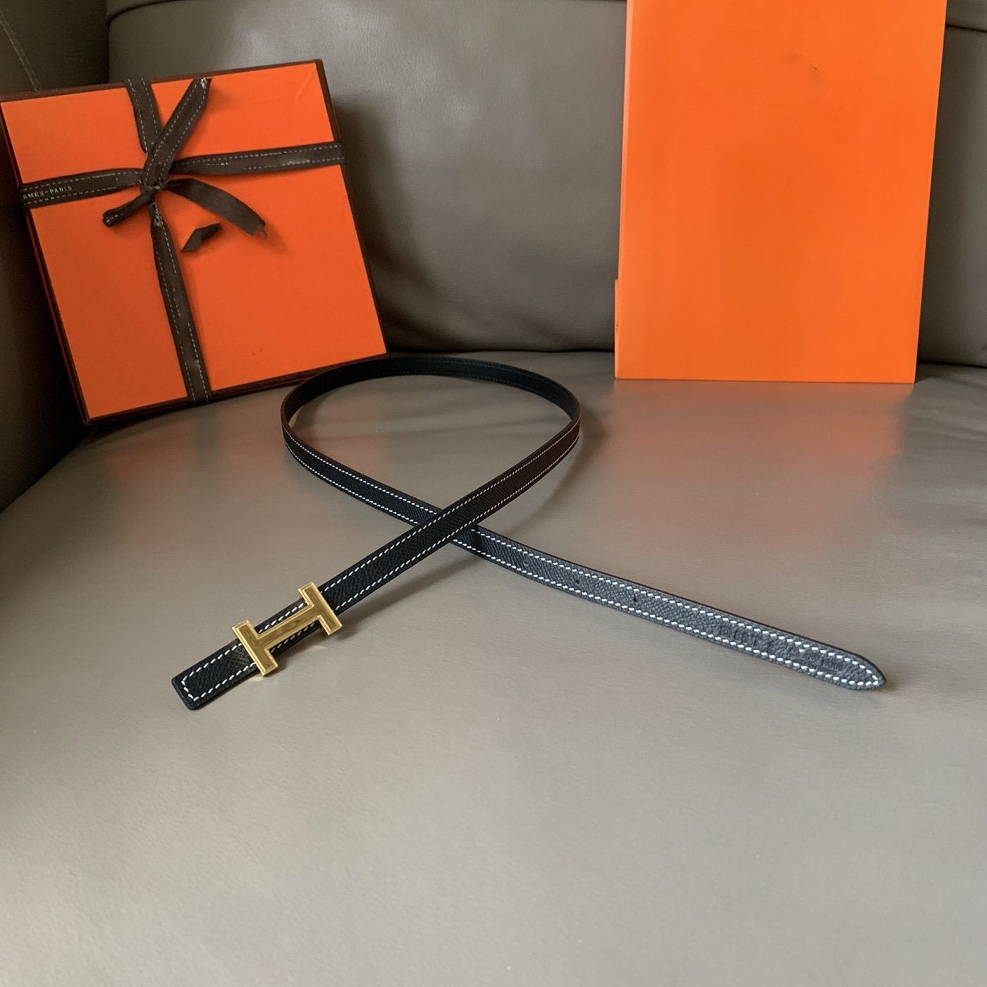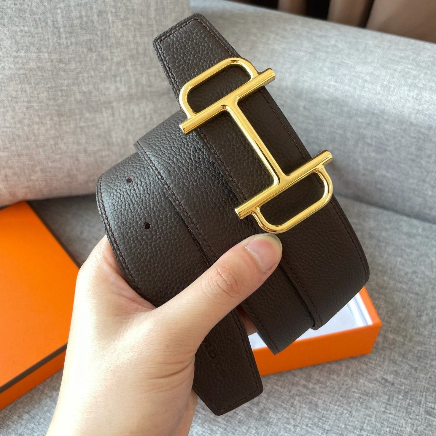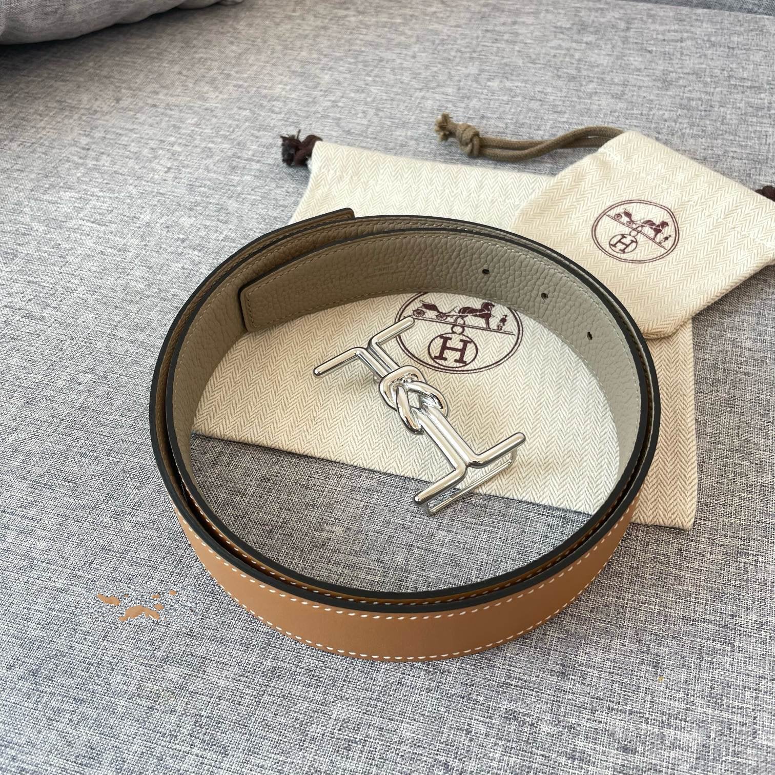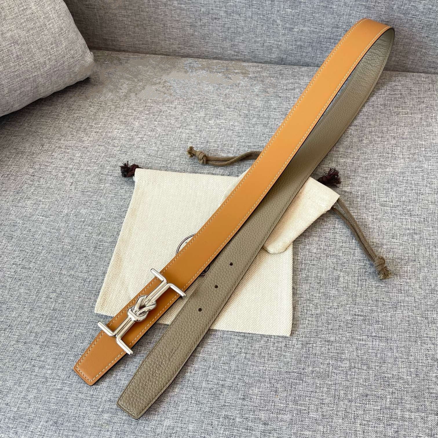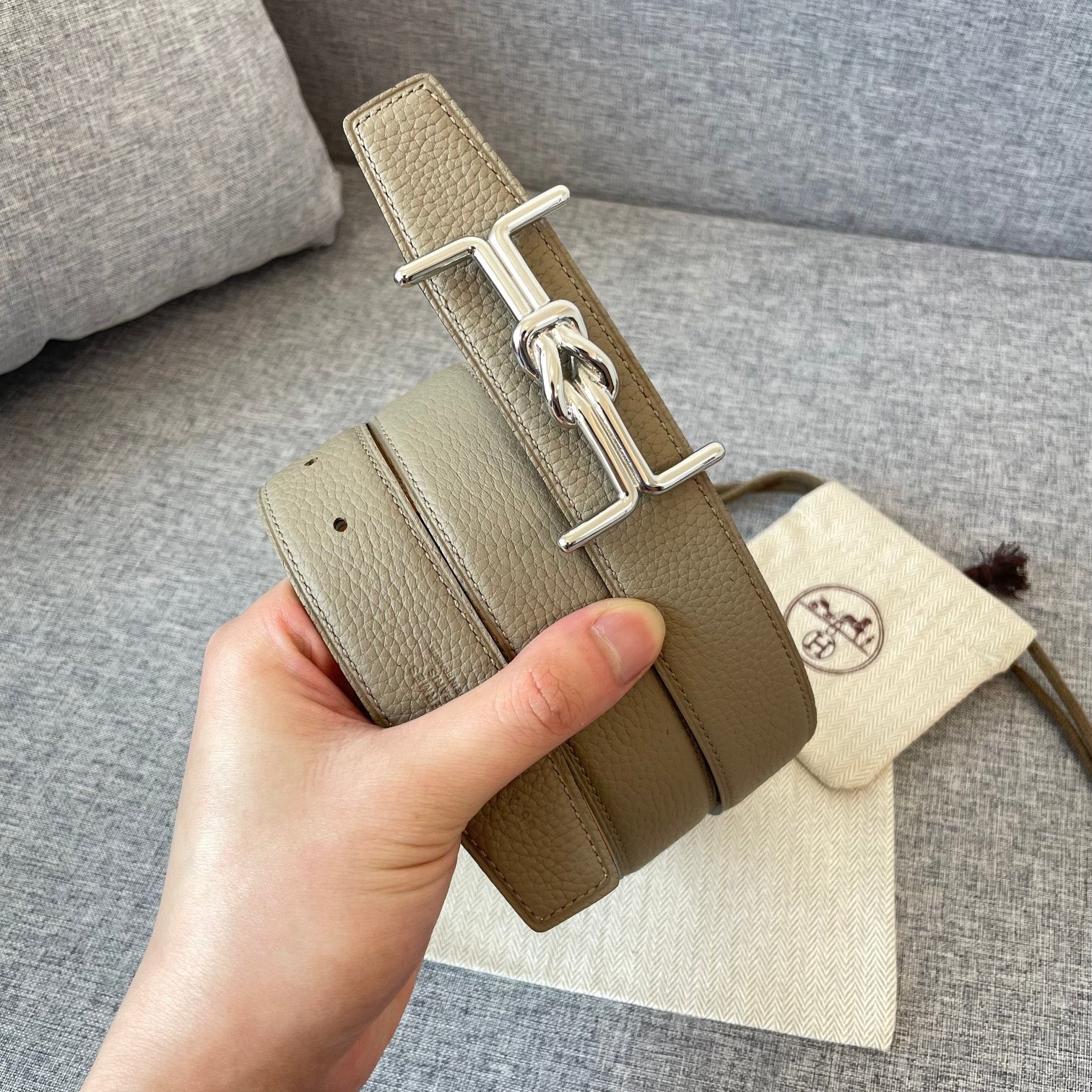 H TUBE BELT 38MM SILVER BUCKLE TIN GREY GOLD LEATHER