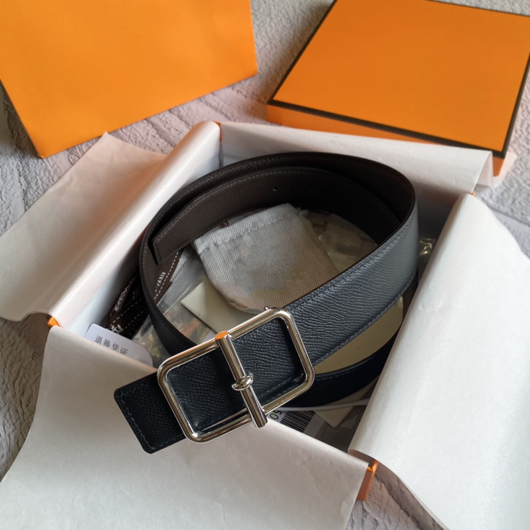 3.8CM BELT H REVERSIBLE BLACK GREY LEATHER