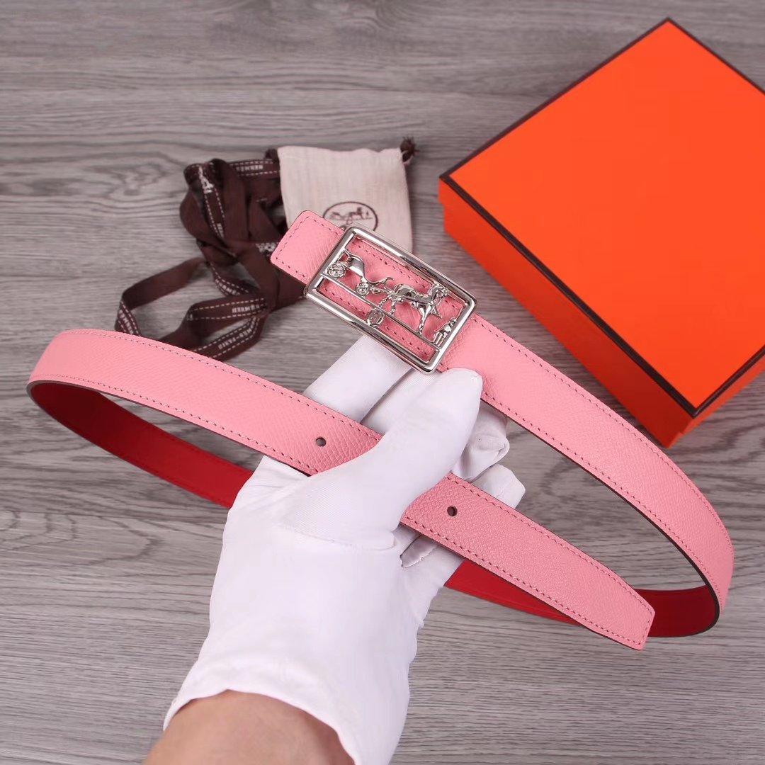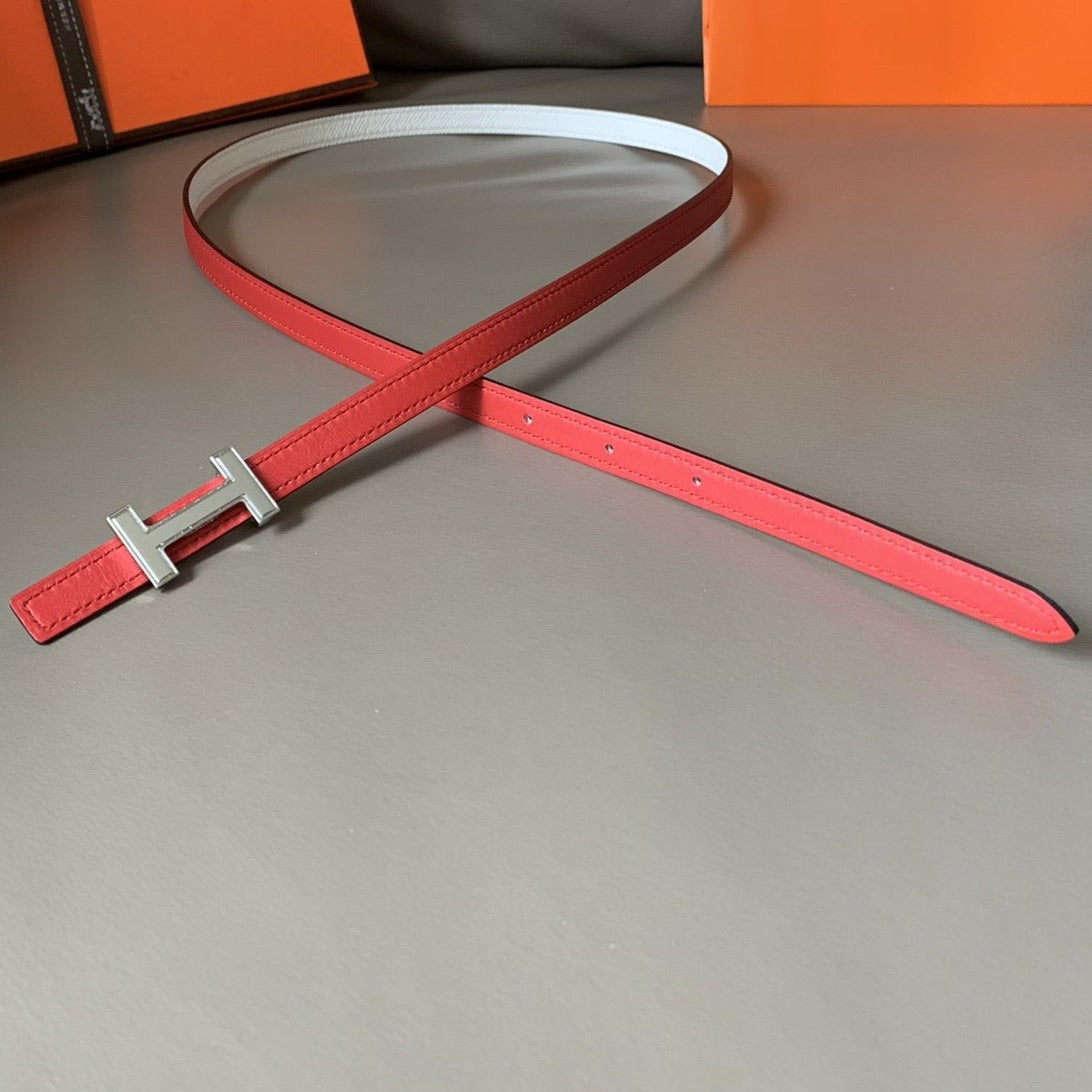 H BELT WOMEN SILVER BUCKLE 24MM ROSE RED LEATHER