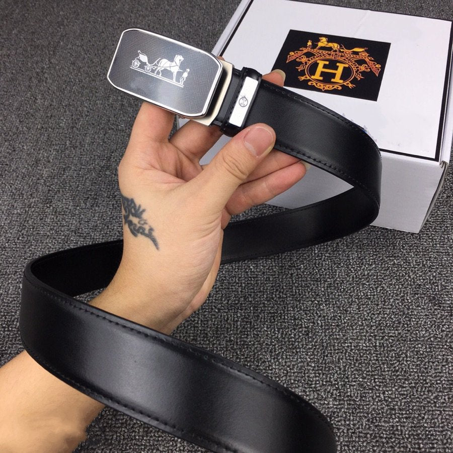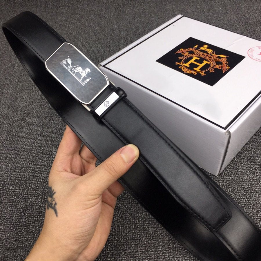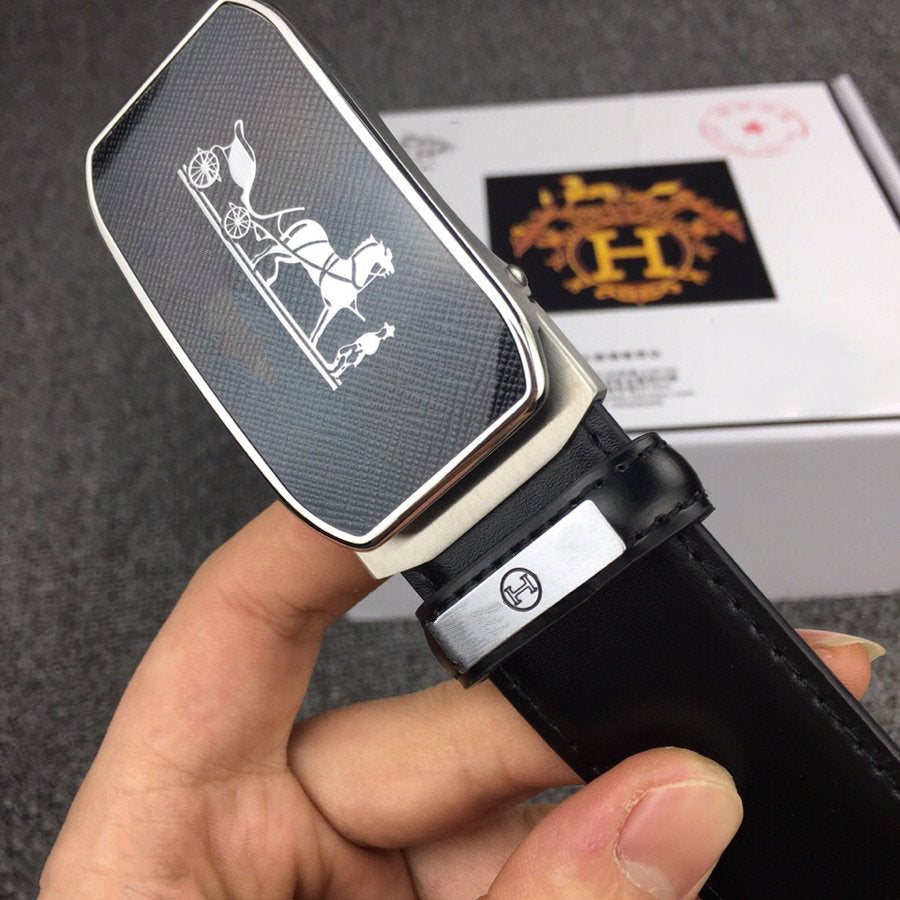 H BELT HORSE BUCKLE BLACK LEATHER REVERSIBLE 3.8CM