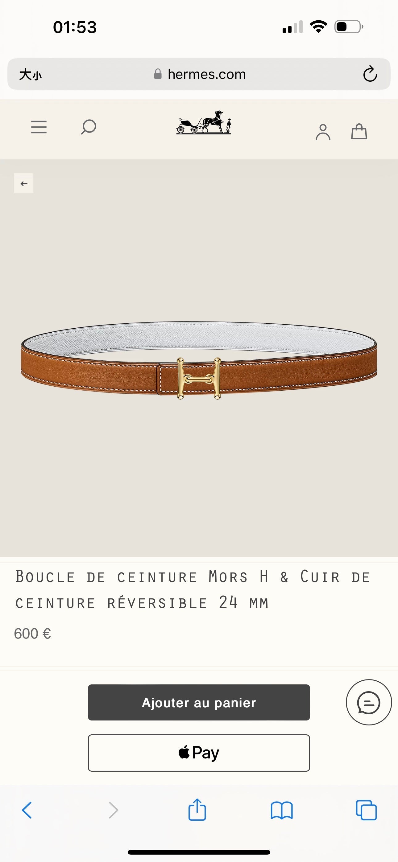 HM Pink Gold Mors H buckle & Reversible 24 mm belt Yellow Beige leather 125366