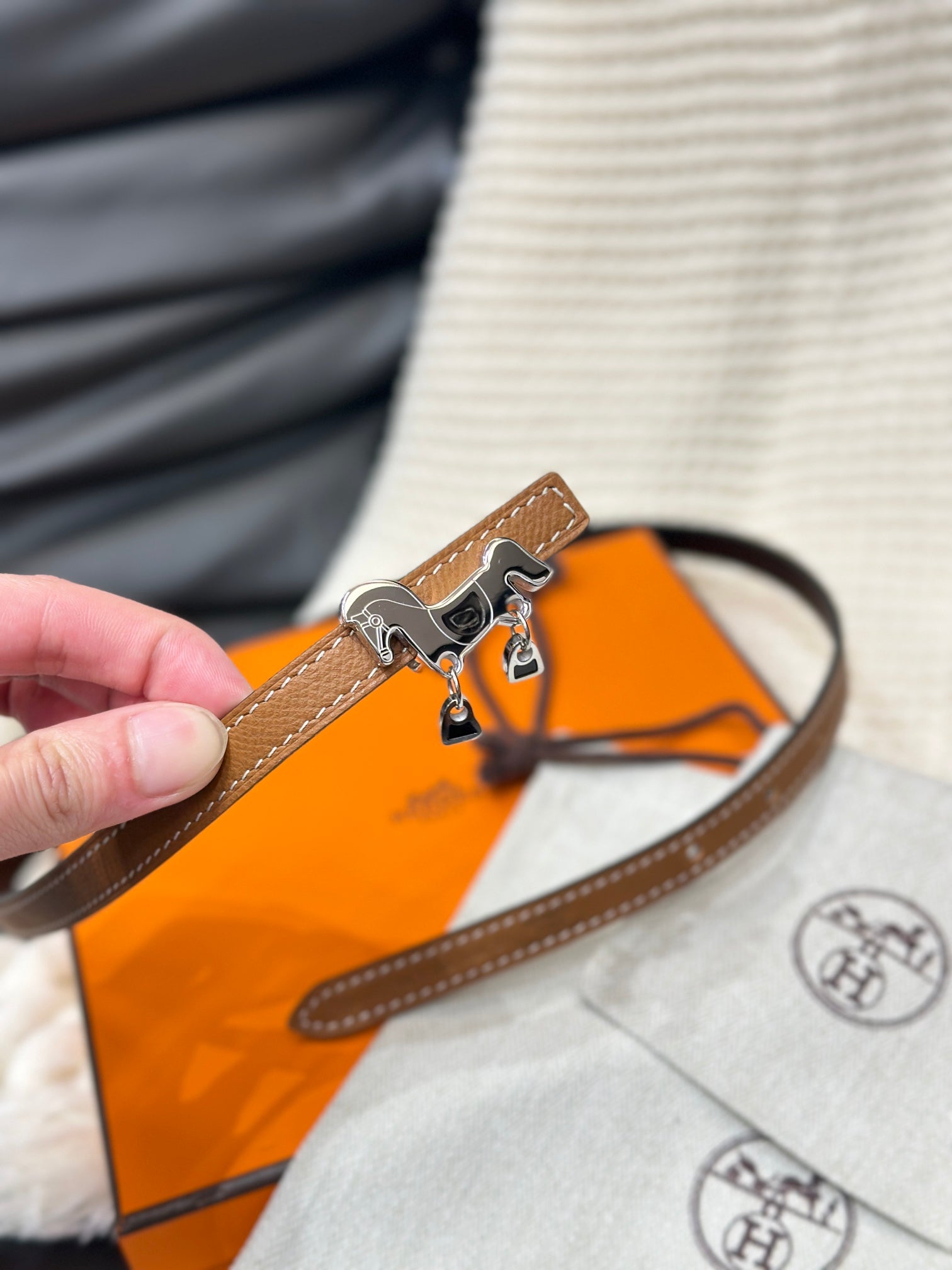 HM KELLY POCKET 18MM BELT CINNAMON BROWN LEATHER SILVER HARDWARE