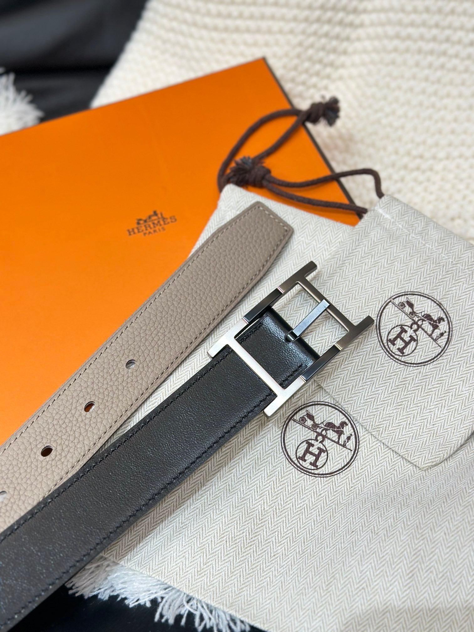 HM Silver Constance & Reverible Belt Brown Etoupe Leather 125372