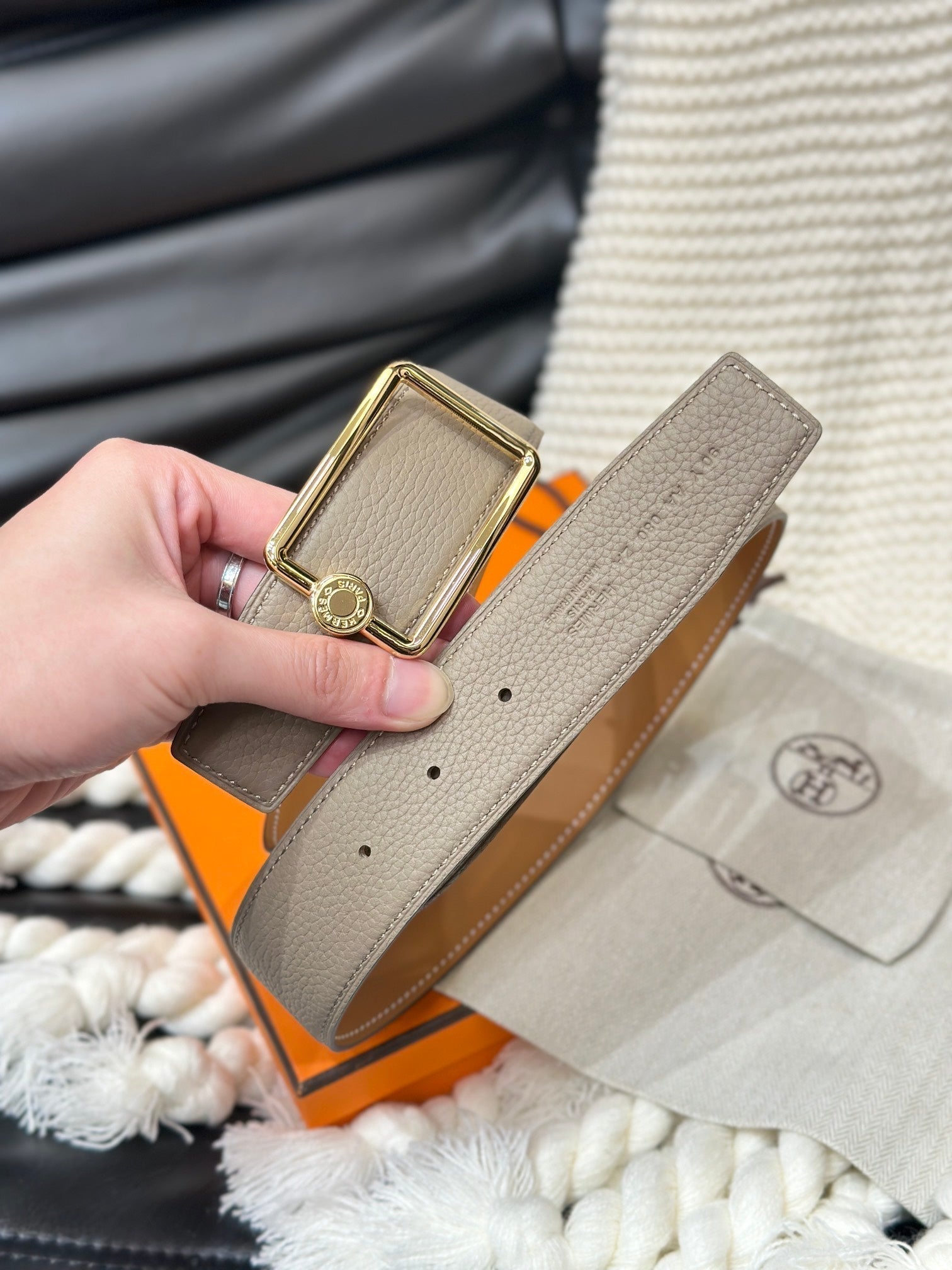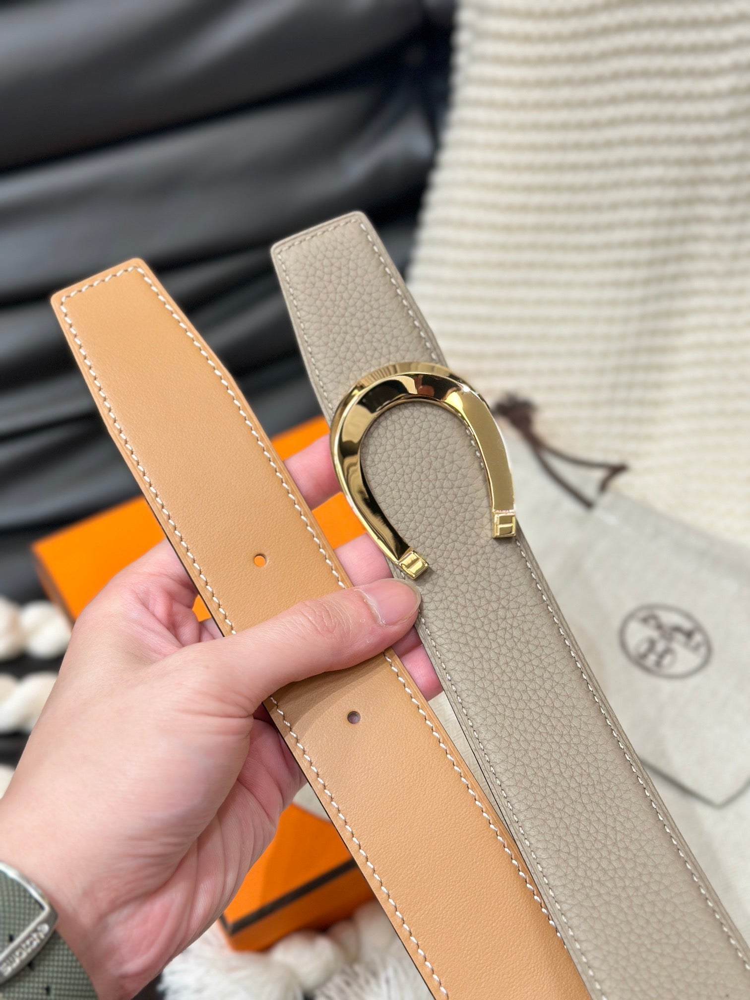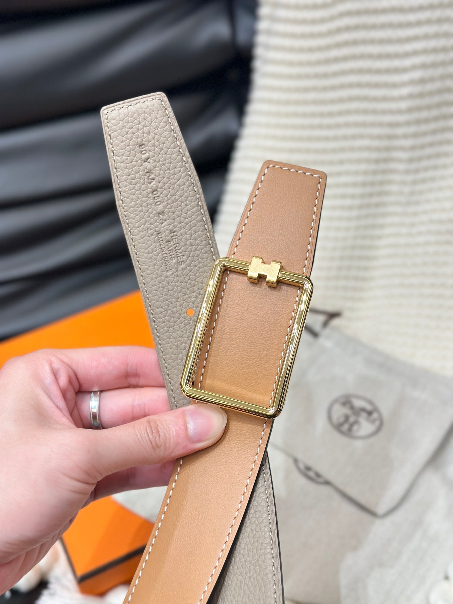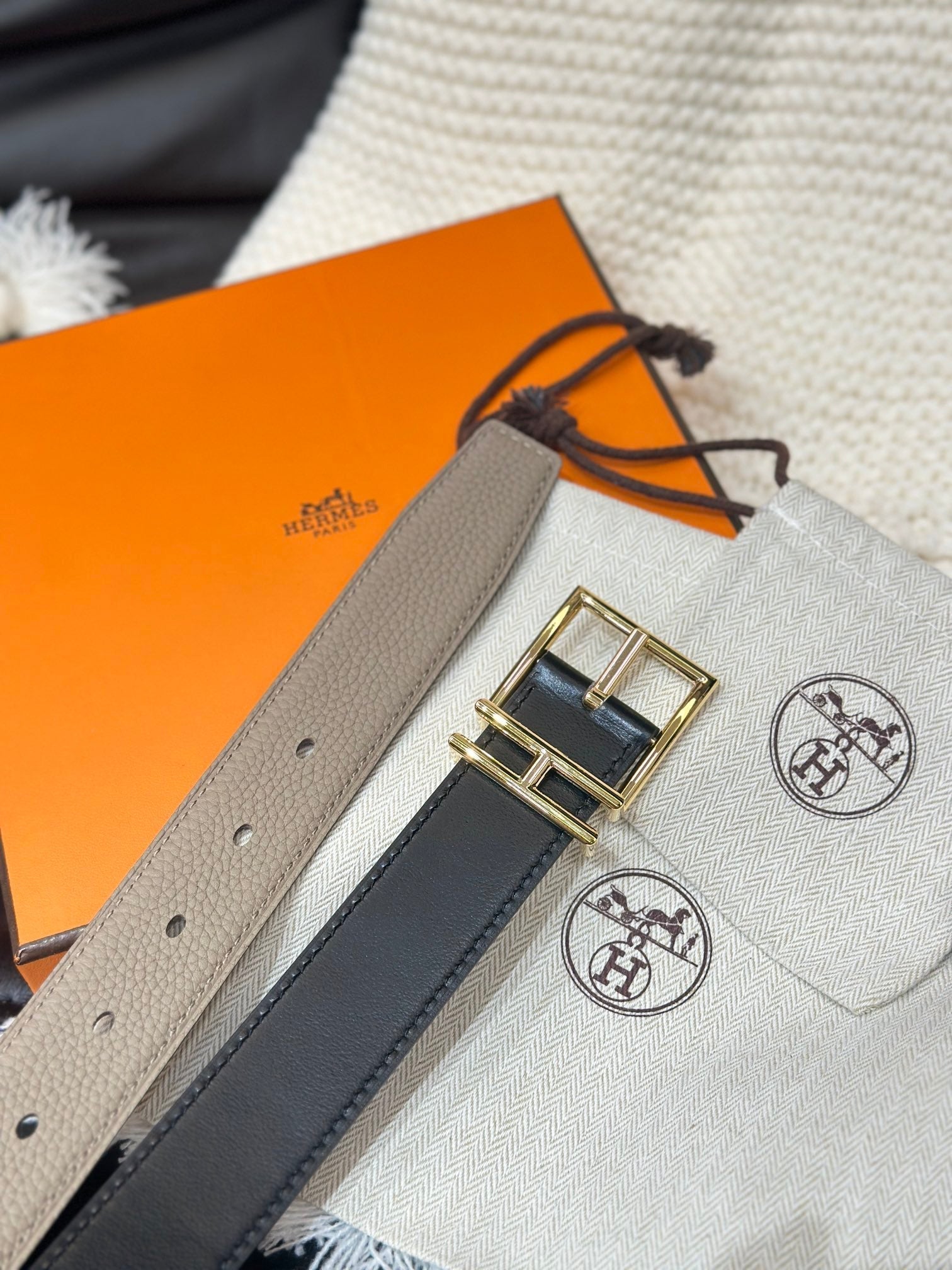 HM Gold Mors H buckle & Reversible 24 mm belt Yellow Beige leather 125368