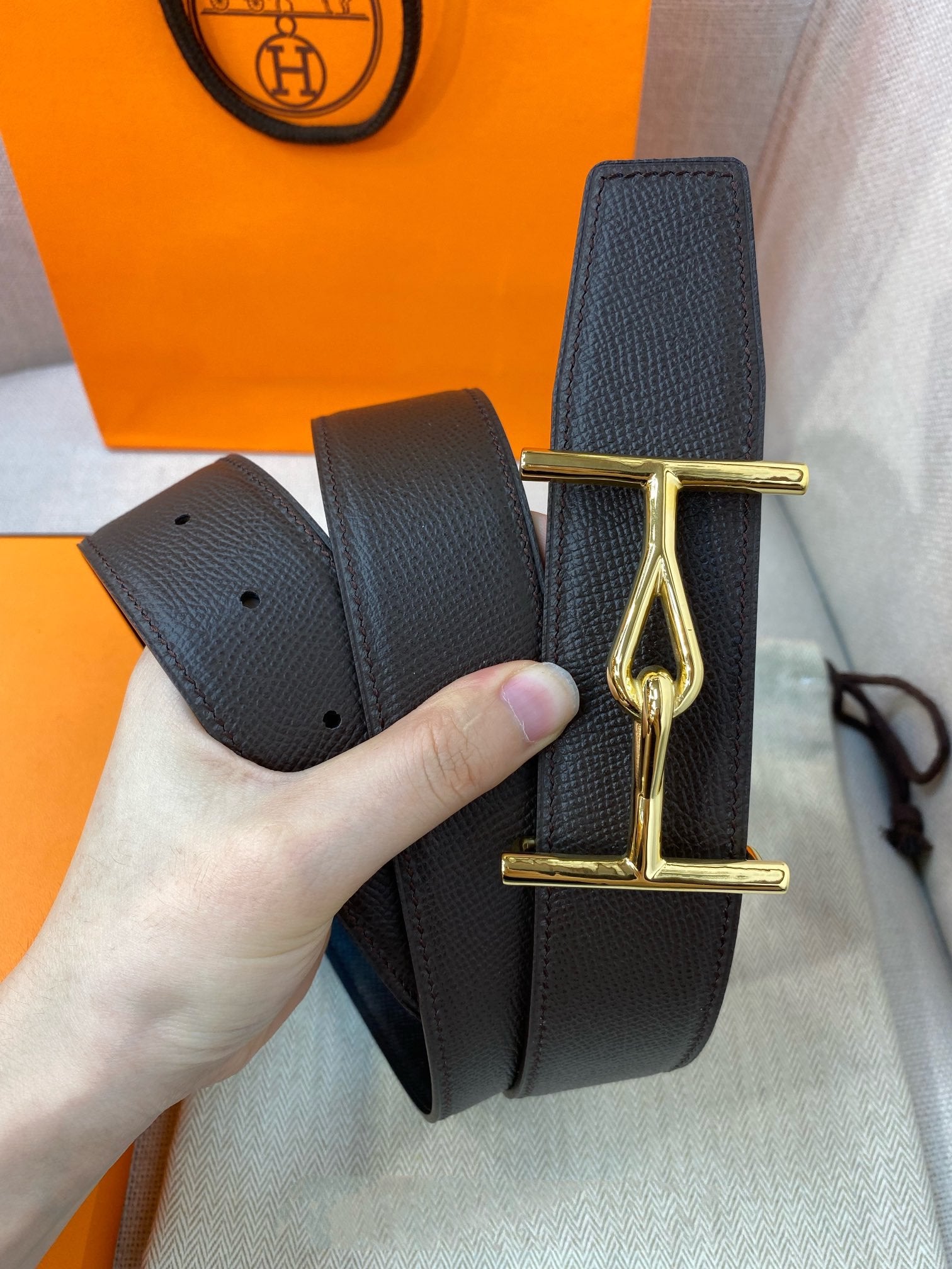 H TONIGHT BELT 38MM GOLD BUCKLE CHESTNUTE GRAPHITE LEATHER