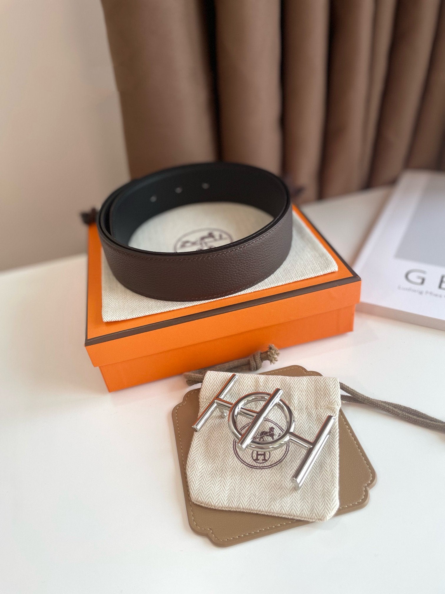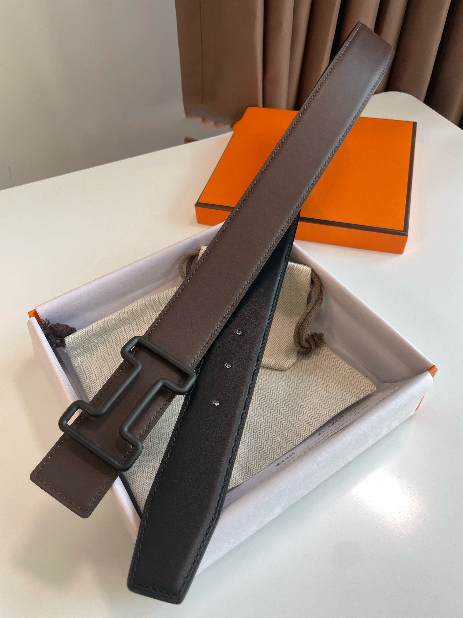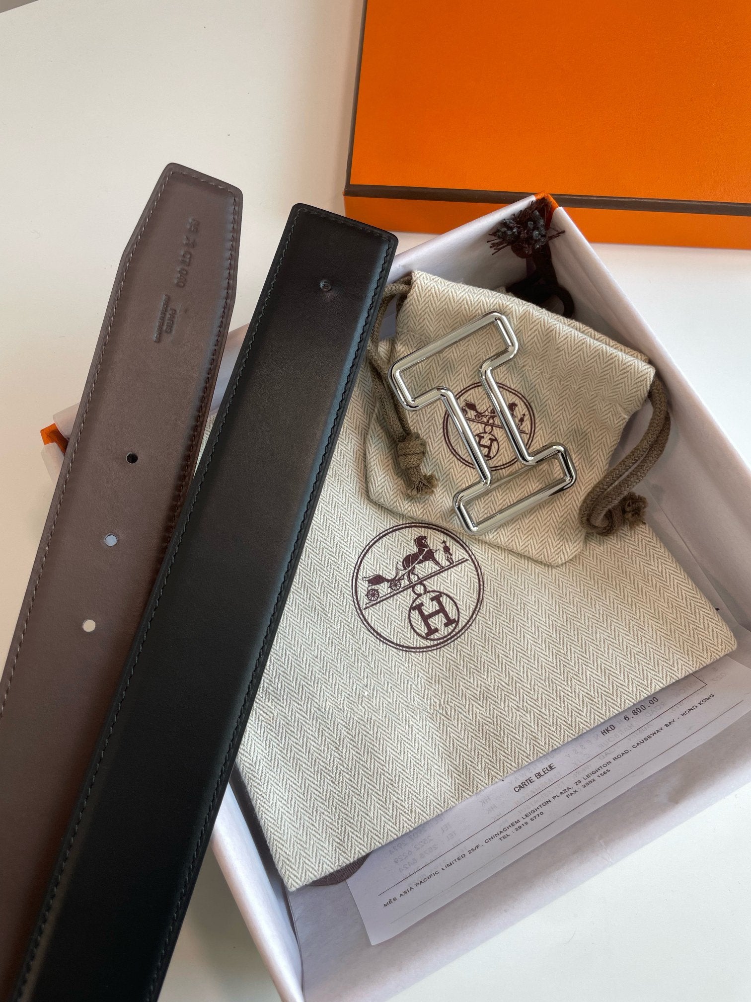 H ULYSSE BELT 38MM SILVER BUCKLE BLACK BROWN LEATHER
