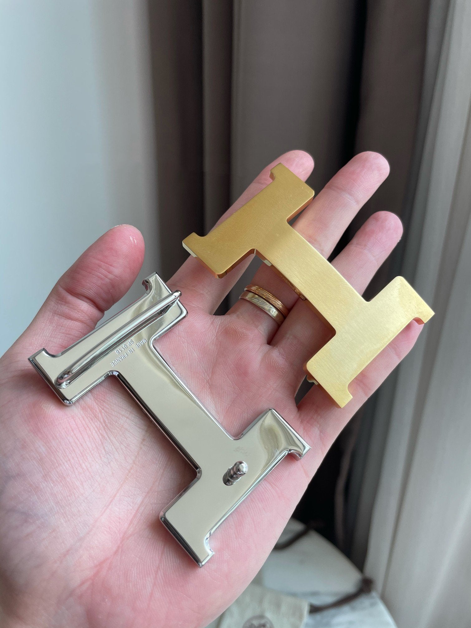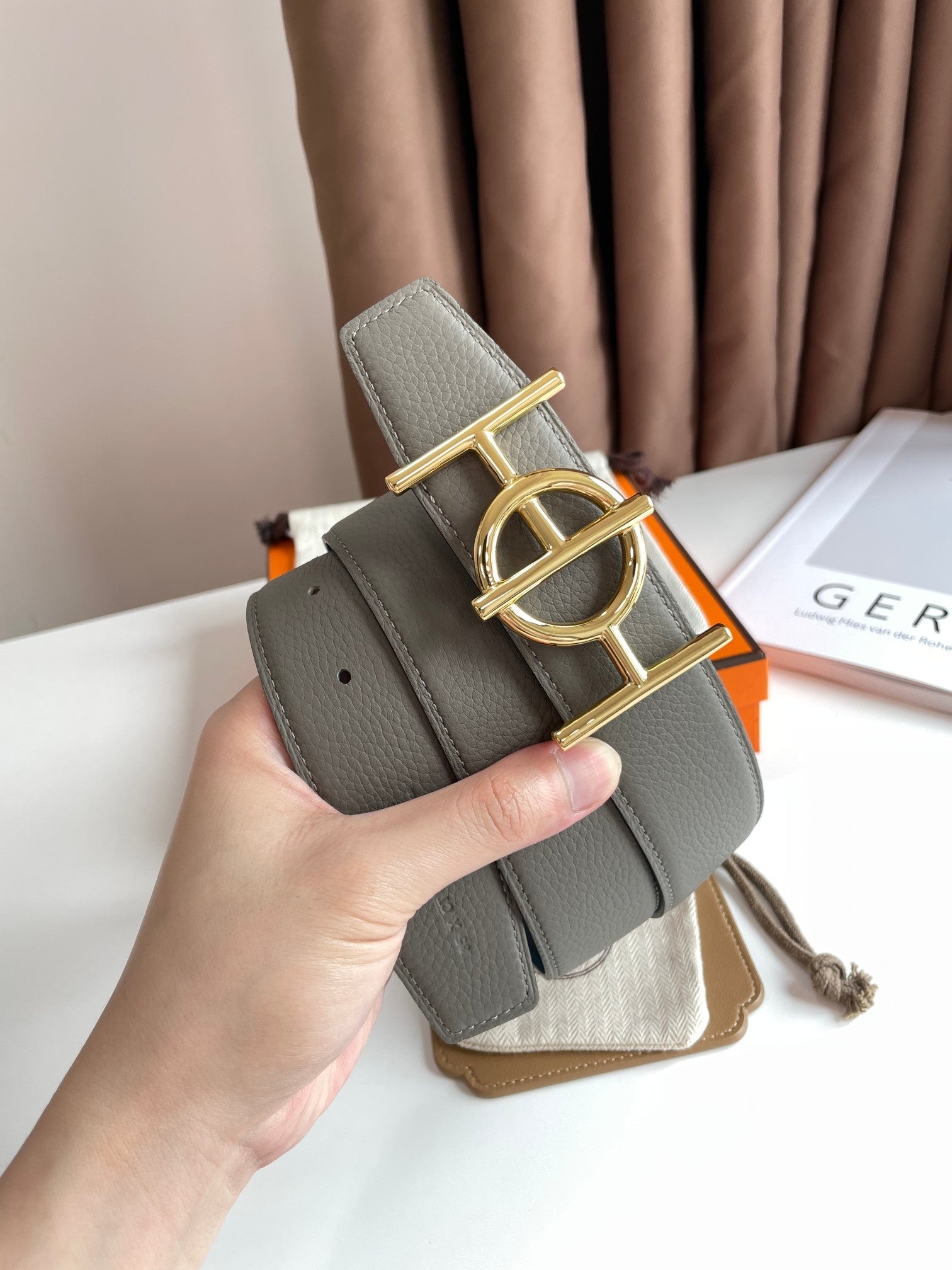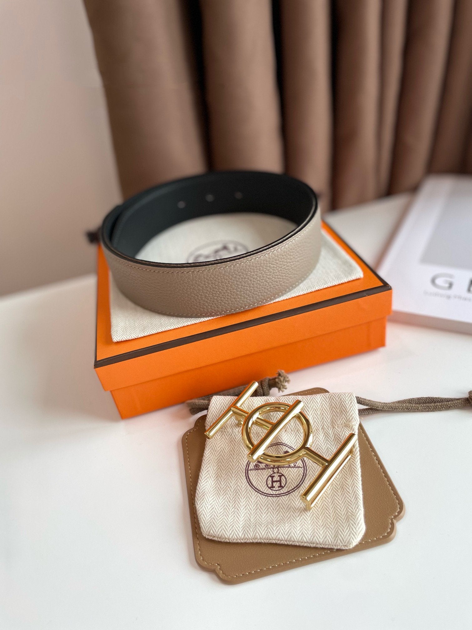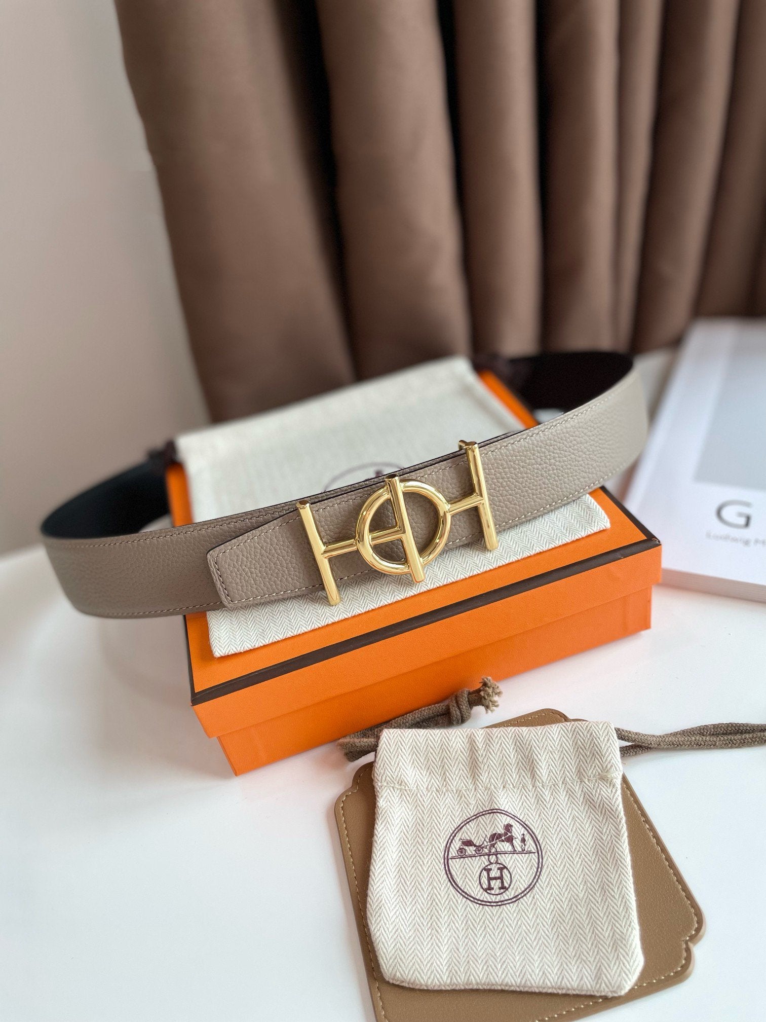 H CONTANCE BELT 38MM GOLD BUCKLE GOLD GREY LEATHER