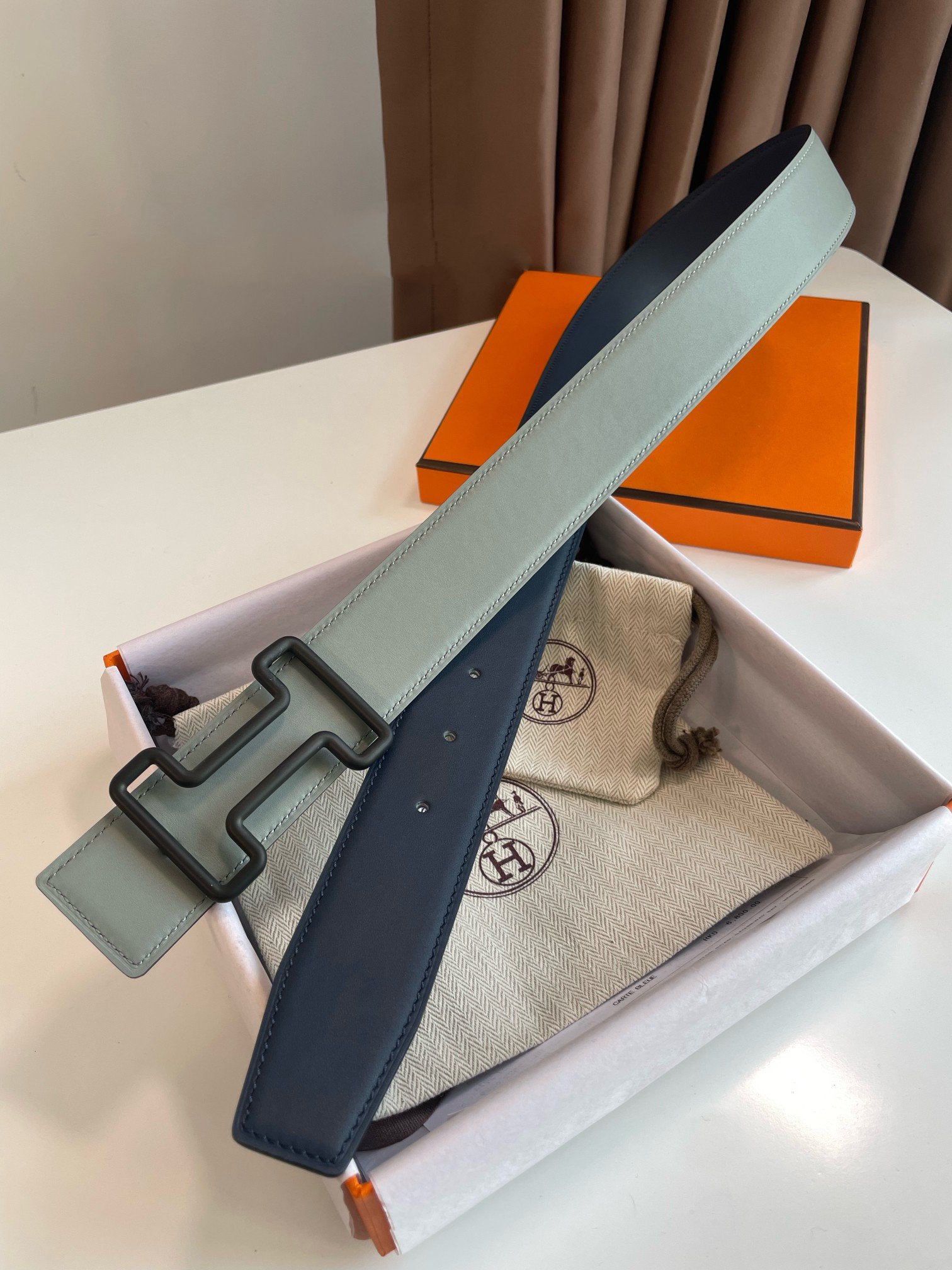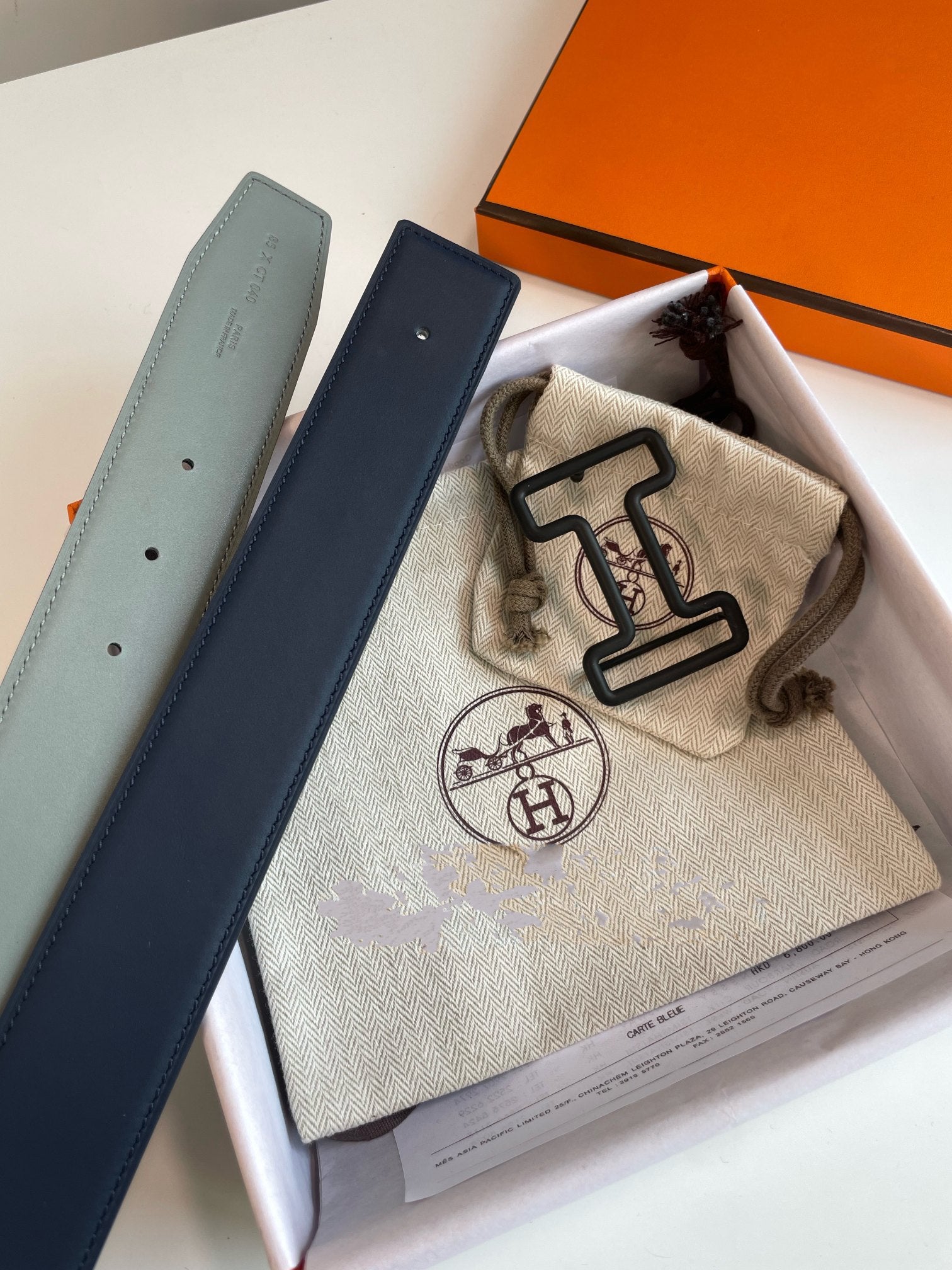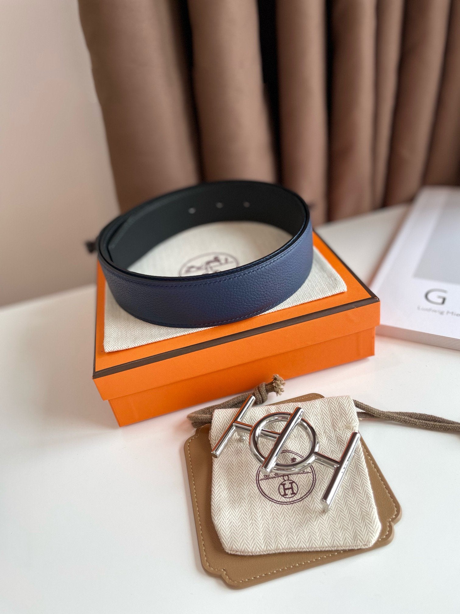 H JUMBO BELT 38MM GOLD BUCKLE DARK BLUE ETOUPE LEATHER