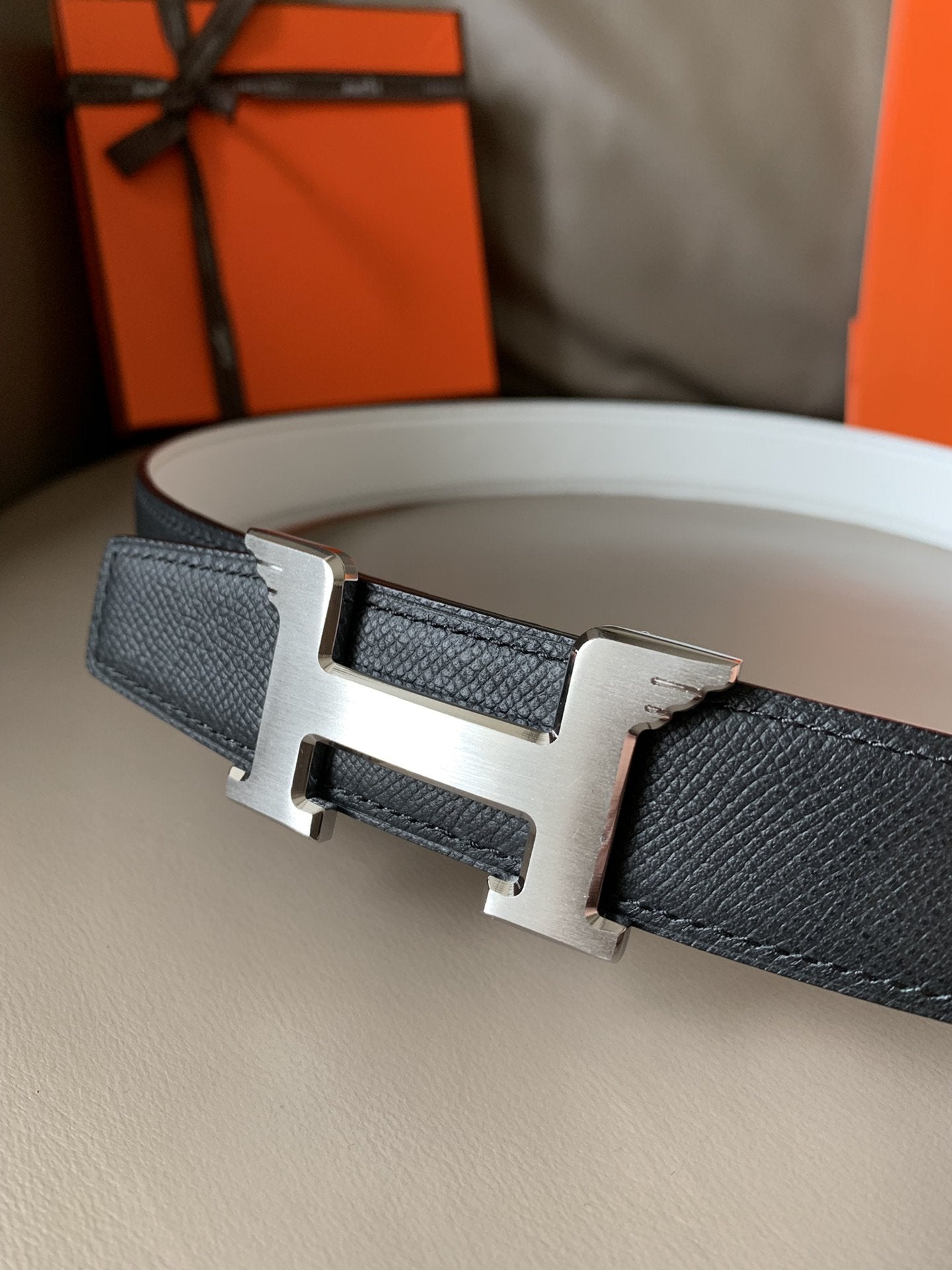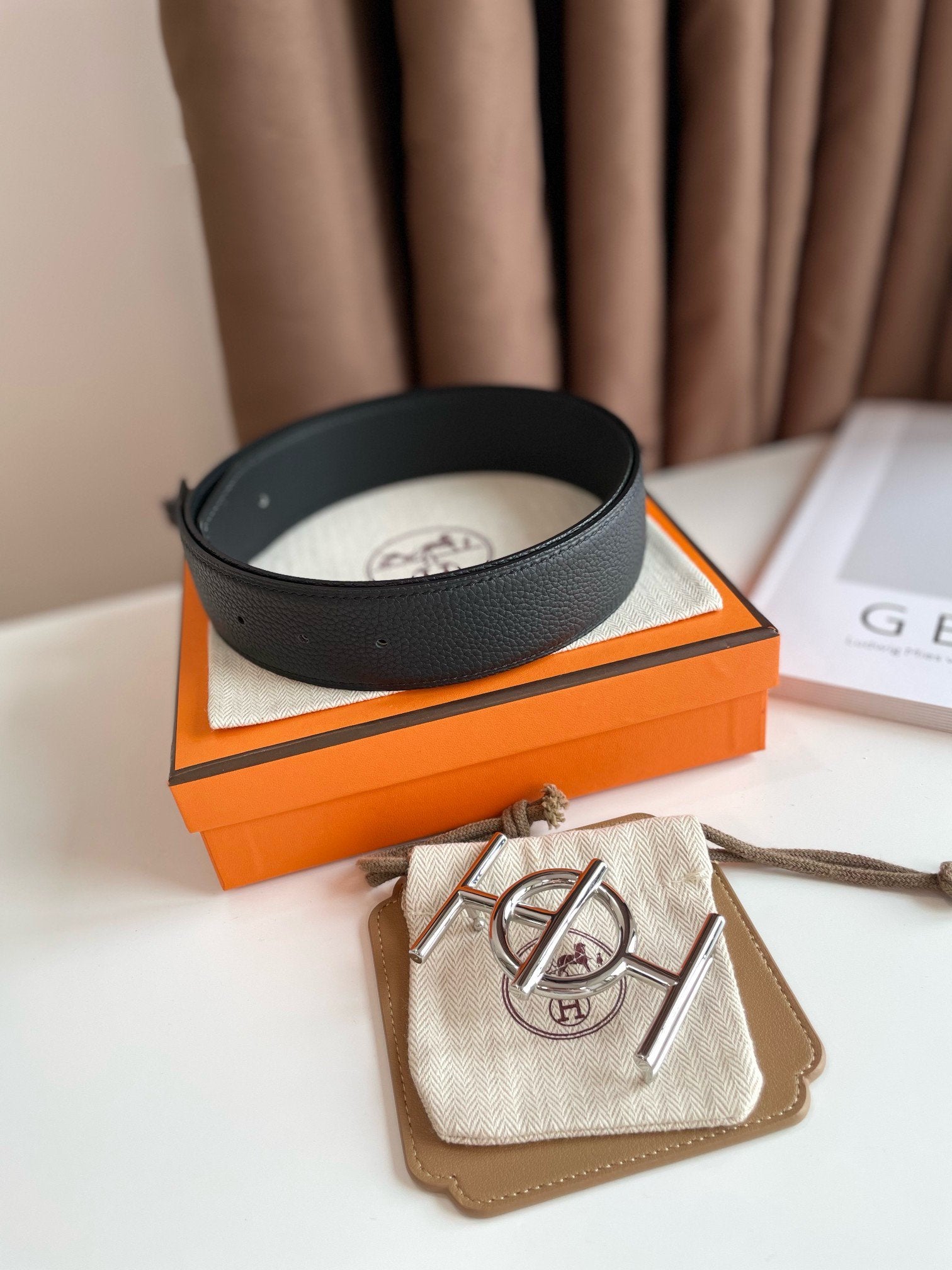 H TONIGHT BELT 38MM BLACK BUCKLE BLACK ETOUPE LEATHER