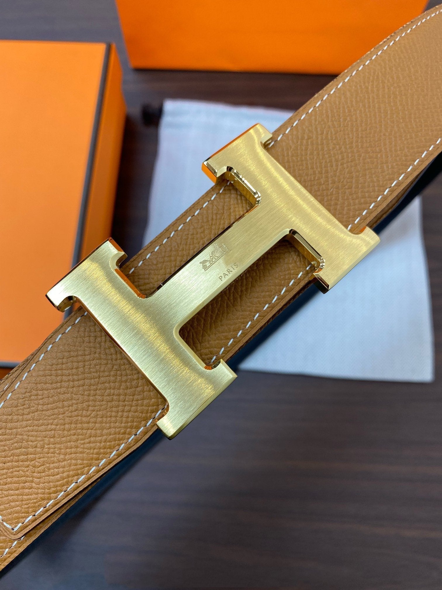H ULYSSE BELT 38MM GOLD BUCKLE BLACK ETOUPE LEATHER