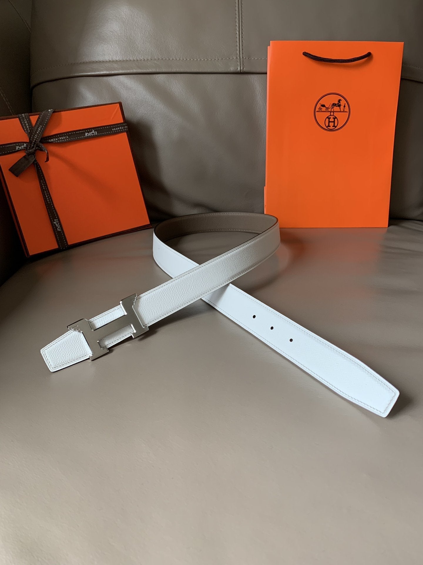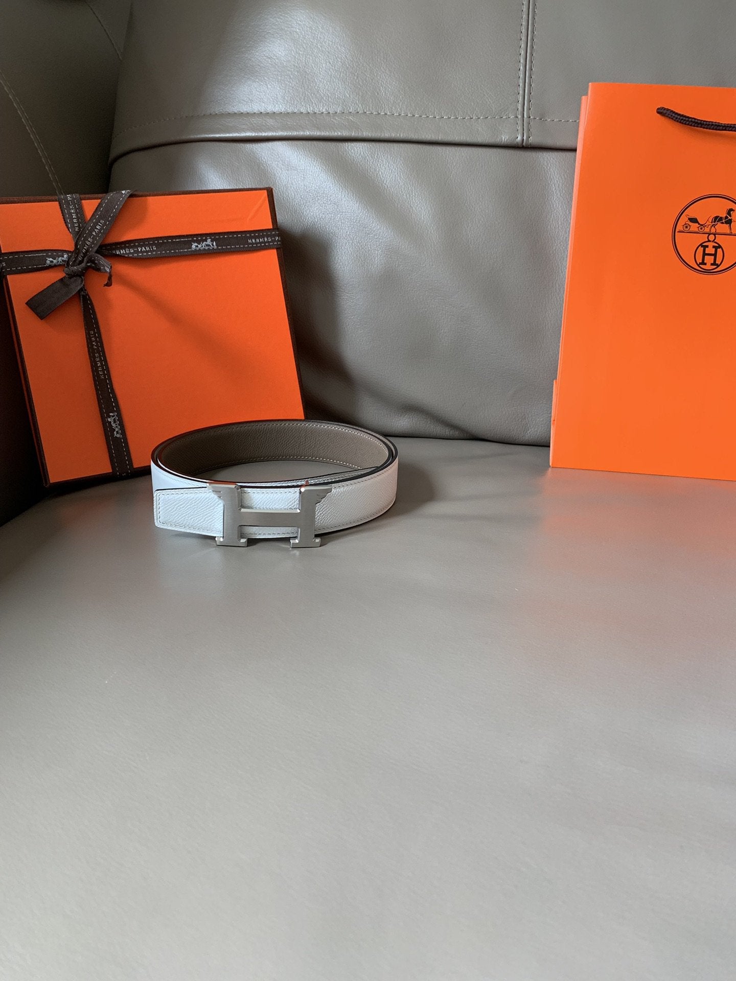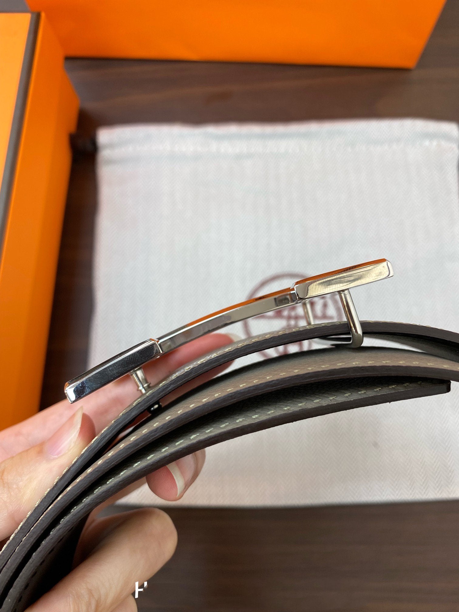H CONTANCE BELT 38MM SILVER BUCKLE GREY LEATHER