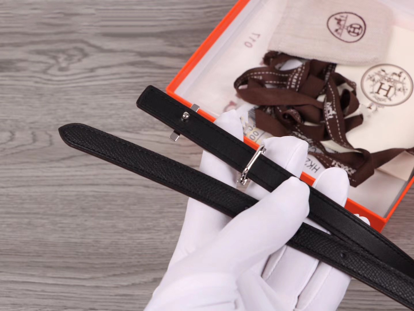 H WOMEN'S BELT 13MM SILVER BUCKLE BLACK LEATHER
