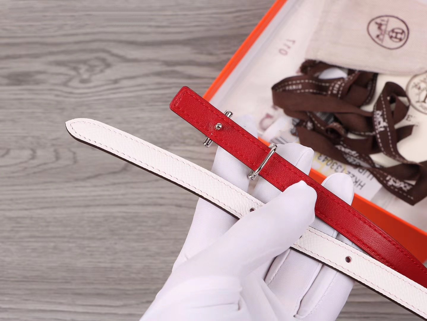 H SILVER BUCKLE WOMEN'S BELT WHITE RED LEATHER STRAP 1.3CM