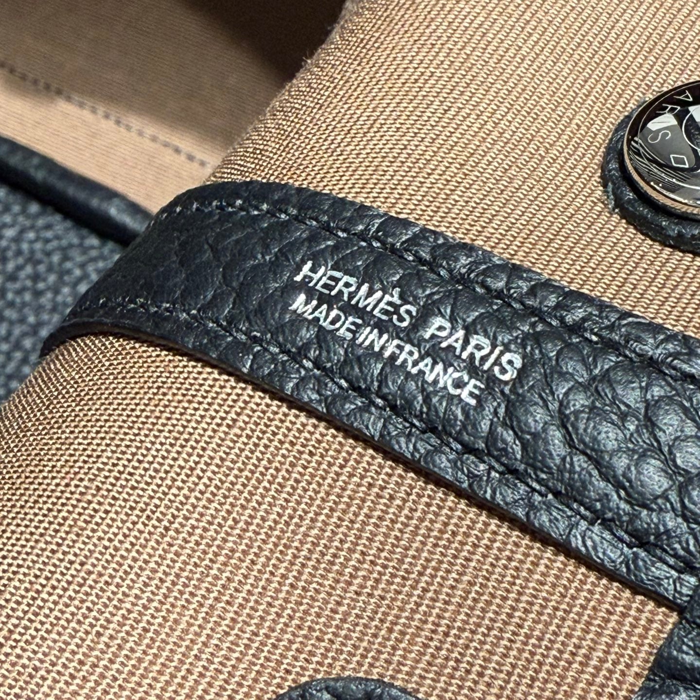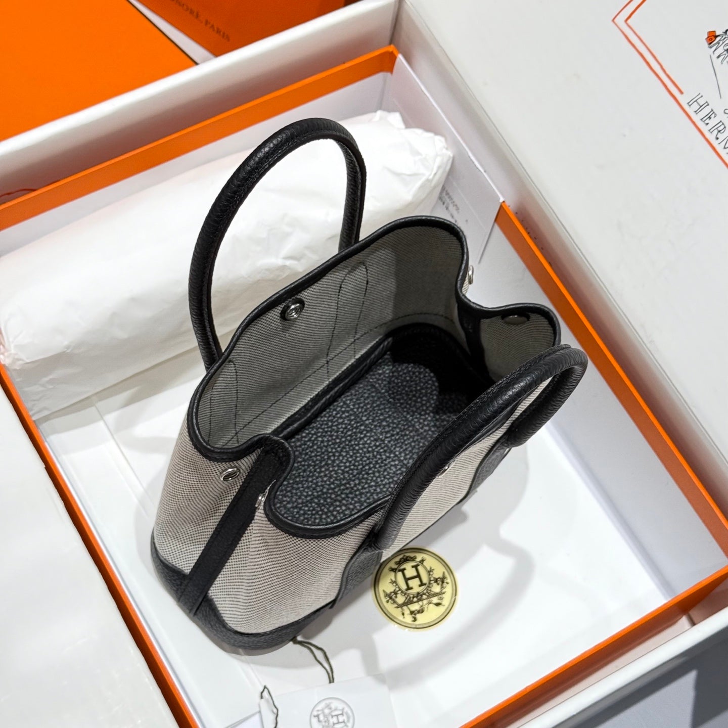 HM Garden Party 30cm Bag Black Togo Grey Canvas